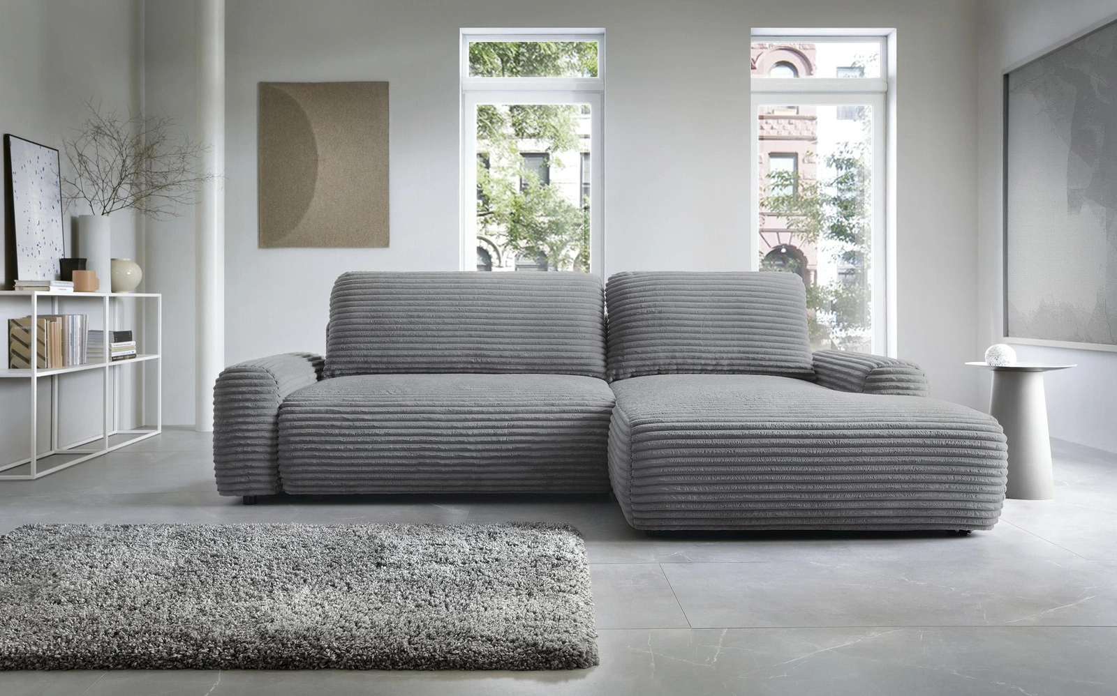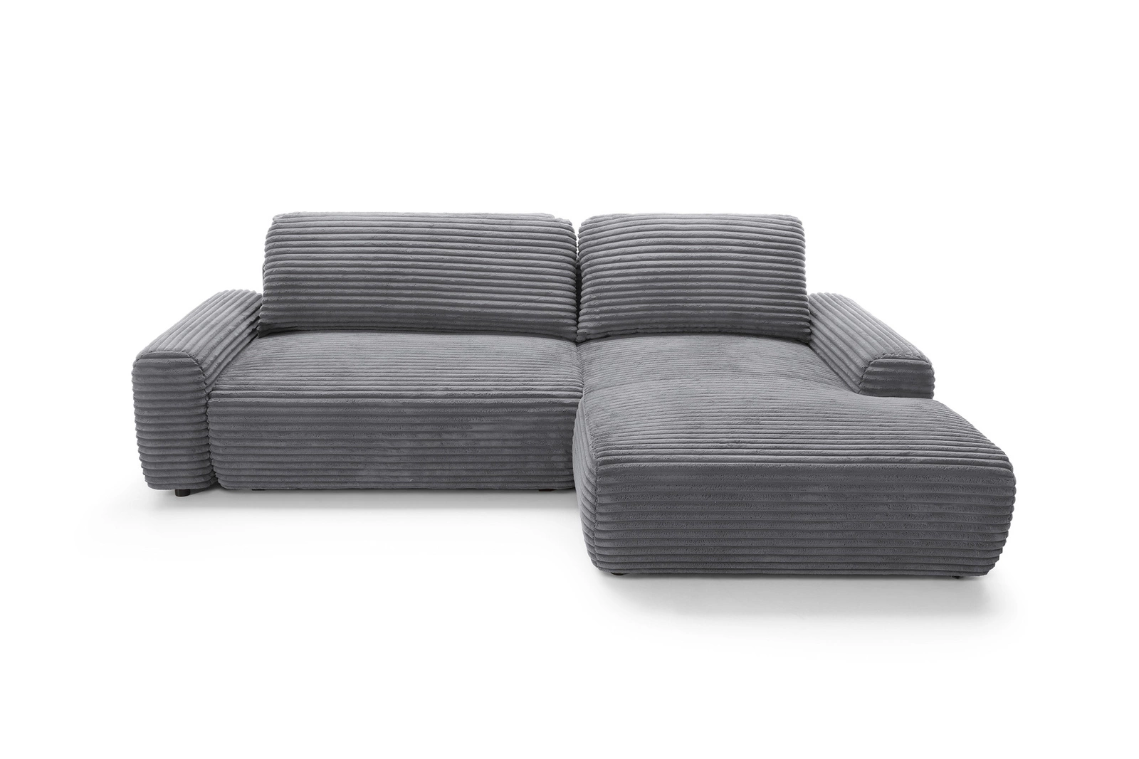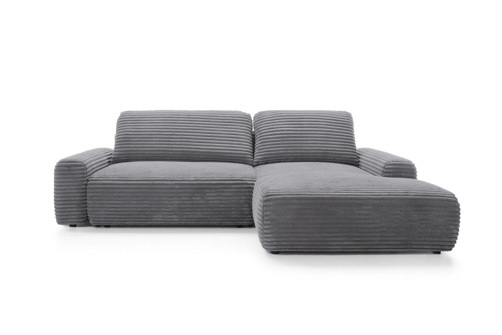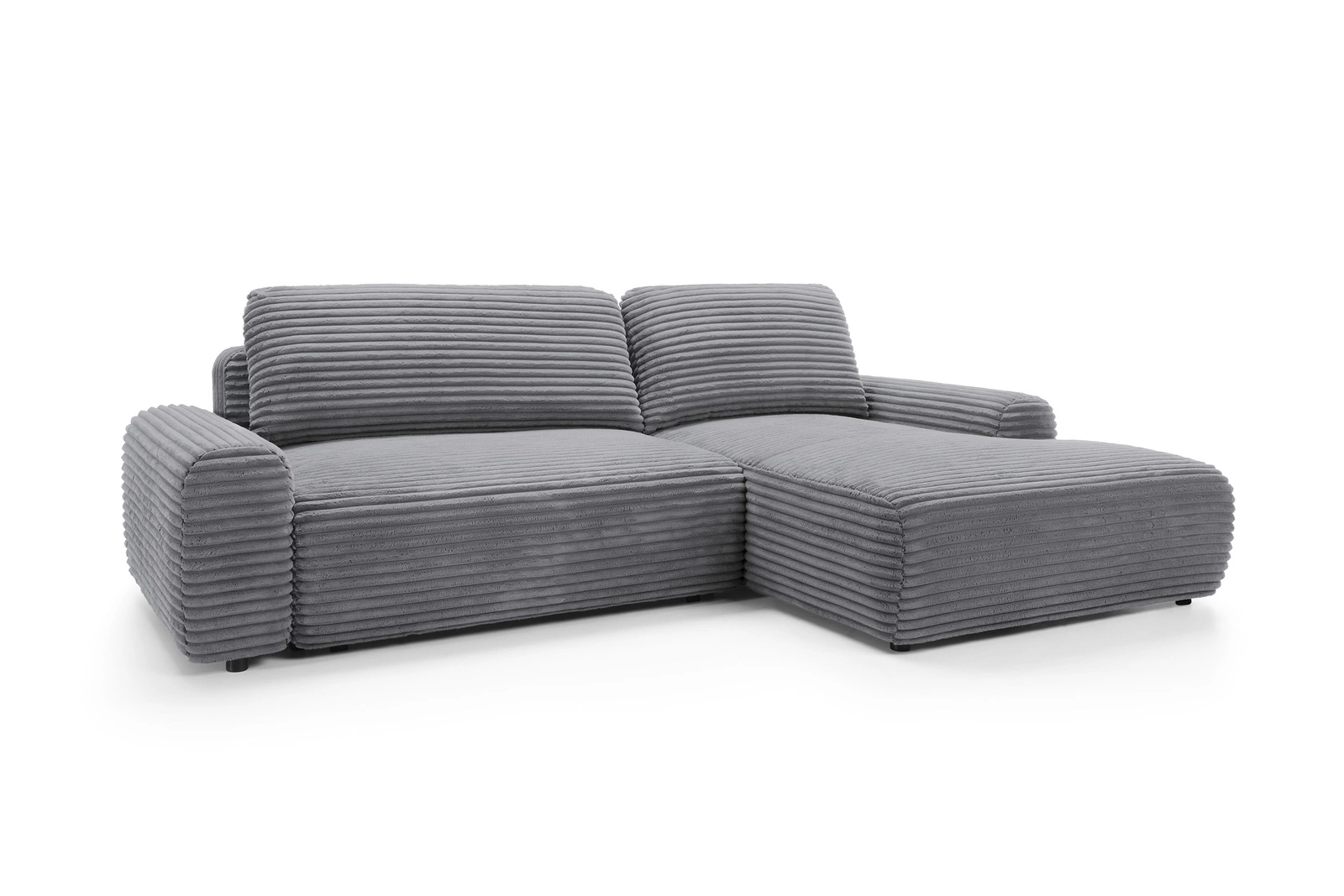 Narożnik sztruksowy z funkcją spania Domle prawy szary marki Intesi to nowoczesny mebel tapicerowany, który łączy minimalistyczny design z wysoką funkcjonalnością. Wykonany z miękkiej tkaniny sztruksowej w eleganckim, ciemnoszarym kolorze, oferuje dużą powierzchnię wypoczynkową (280×150 cm) oraz wygodne miejsce do codziennego spania o wymiarach 210×135 cm. Praktyczny pojemnik na pościel oraz komfortowe siedzisko z pianki sprawiają, że narożnik doskonale sprawdzi się w salonie jako centrum rodzinnego relaksu i spotkań.
