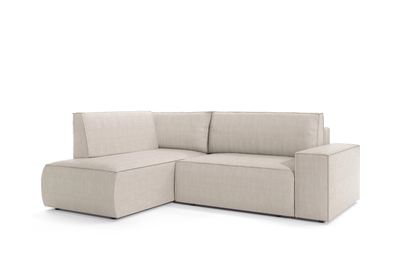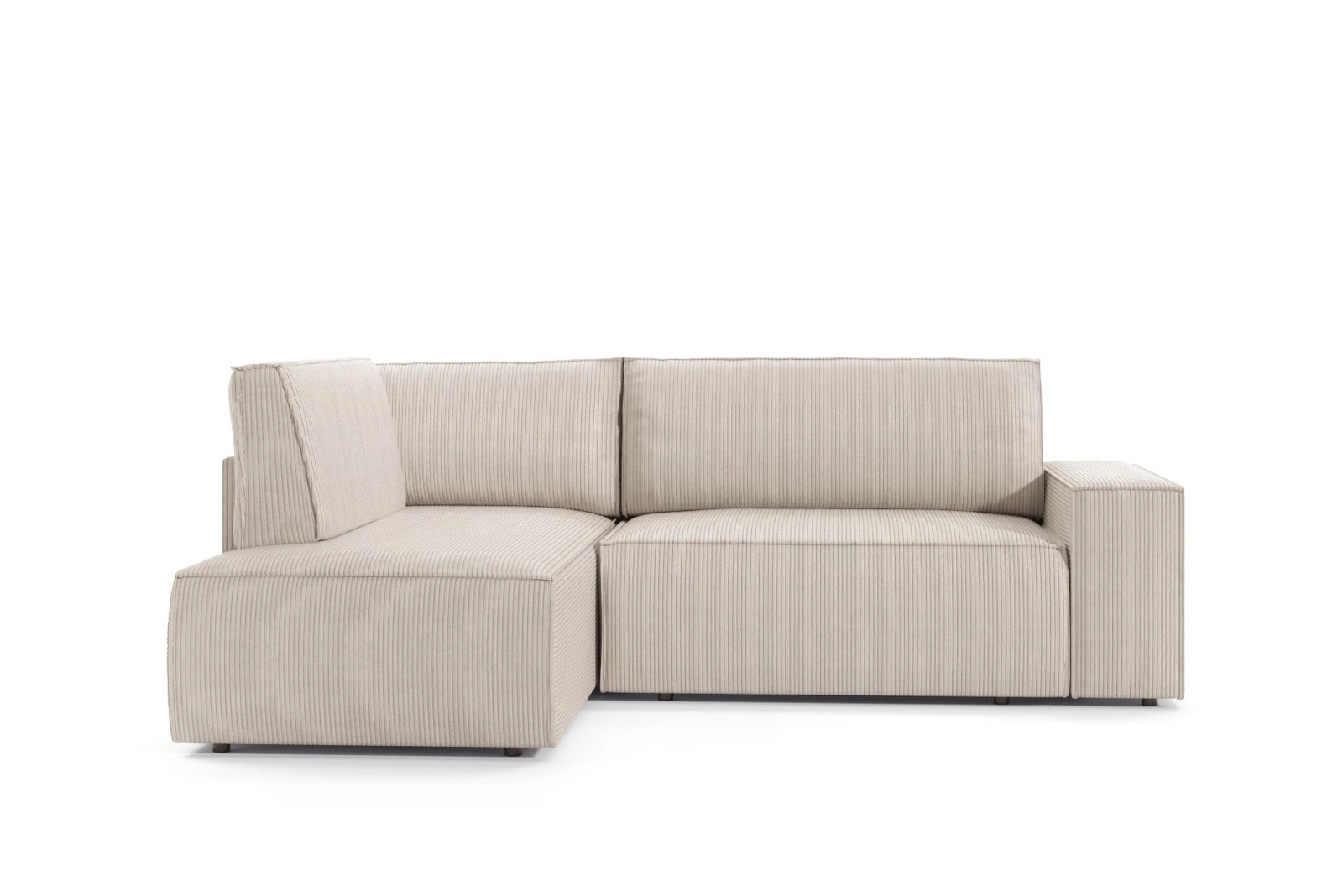 - Łatwa pielęgnacja – sztruksowa tkanina ogranicza widoczność drobnych zabrudzeń, co sprawia, że narożnik długo wygląda jak nowy