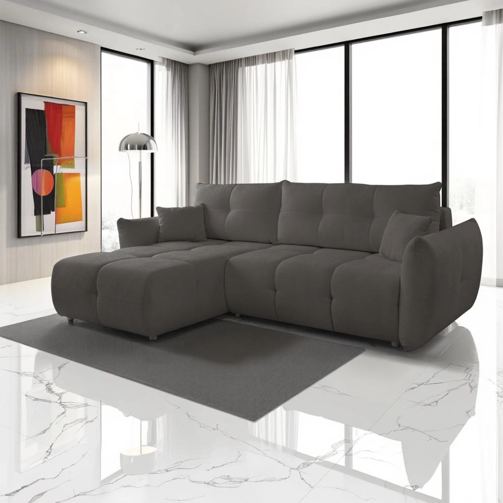 Jeśli szukasz mebla, który w pełni odpowie na potrzeby nowoczesnego salonu, narożnik Bode Intesi będzie doskonałym wyborem. Dzięki funkcji spania szybko zamienisz go w wygodne łóżko, co docenisz podczas niespodziewanych wizyt gości lub wieczornego relaksu z rodziną. Lewostronna konstrukcja pozwala optymalnie zagospodarować przestrzeń, zarówno w przestronnym, jak i mniejszym salonie.