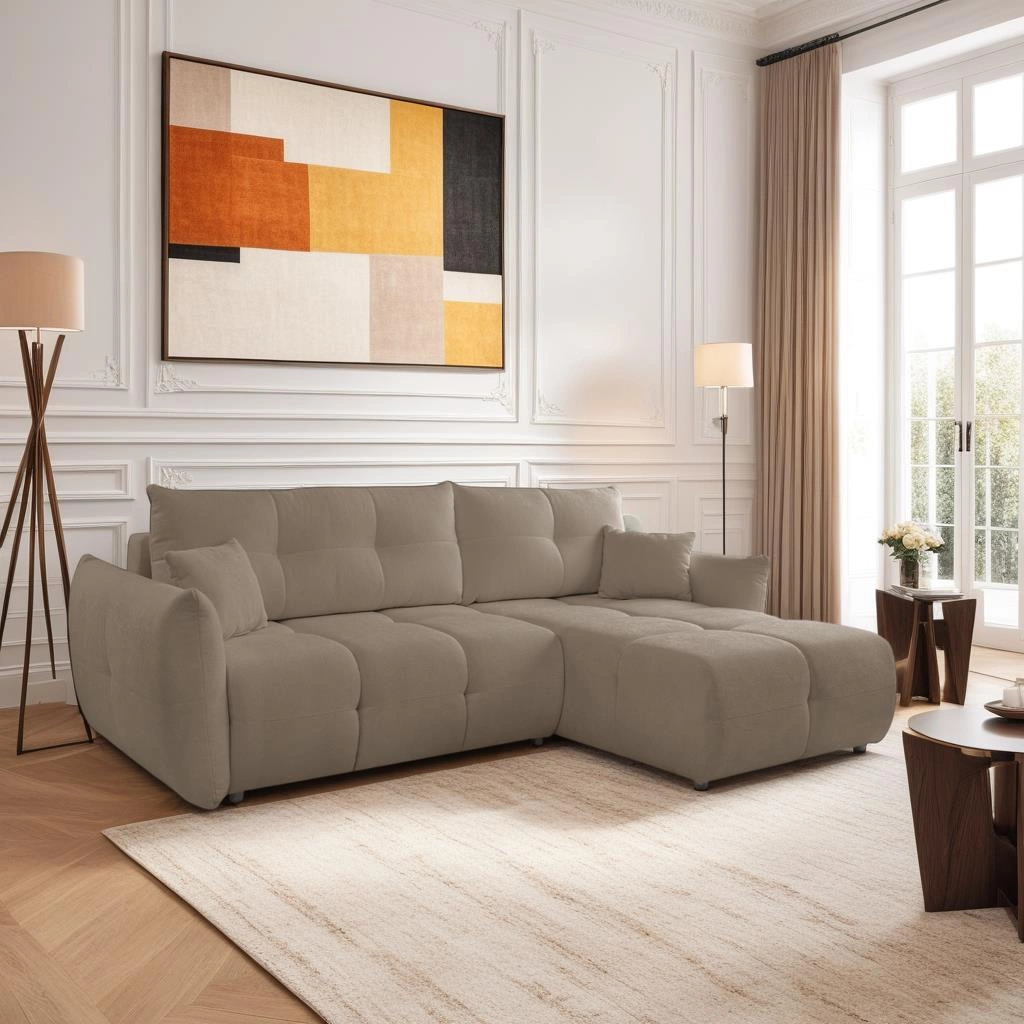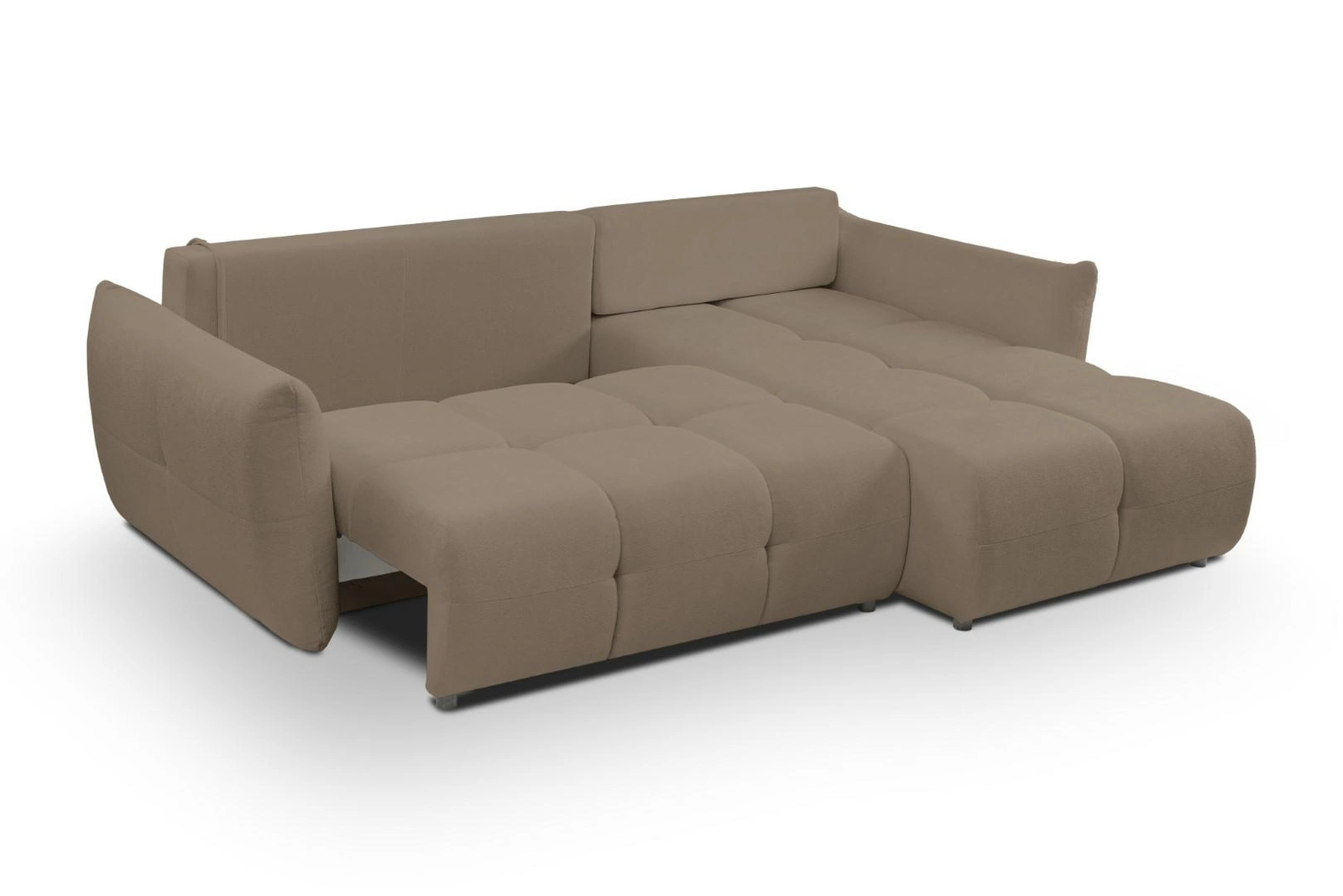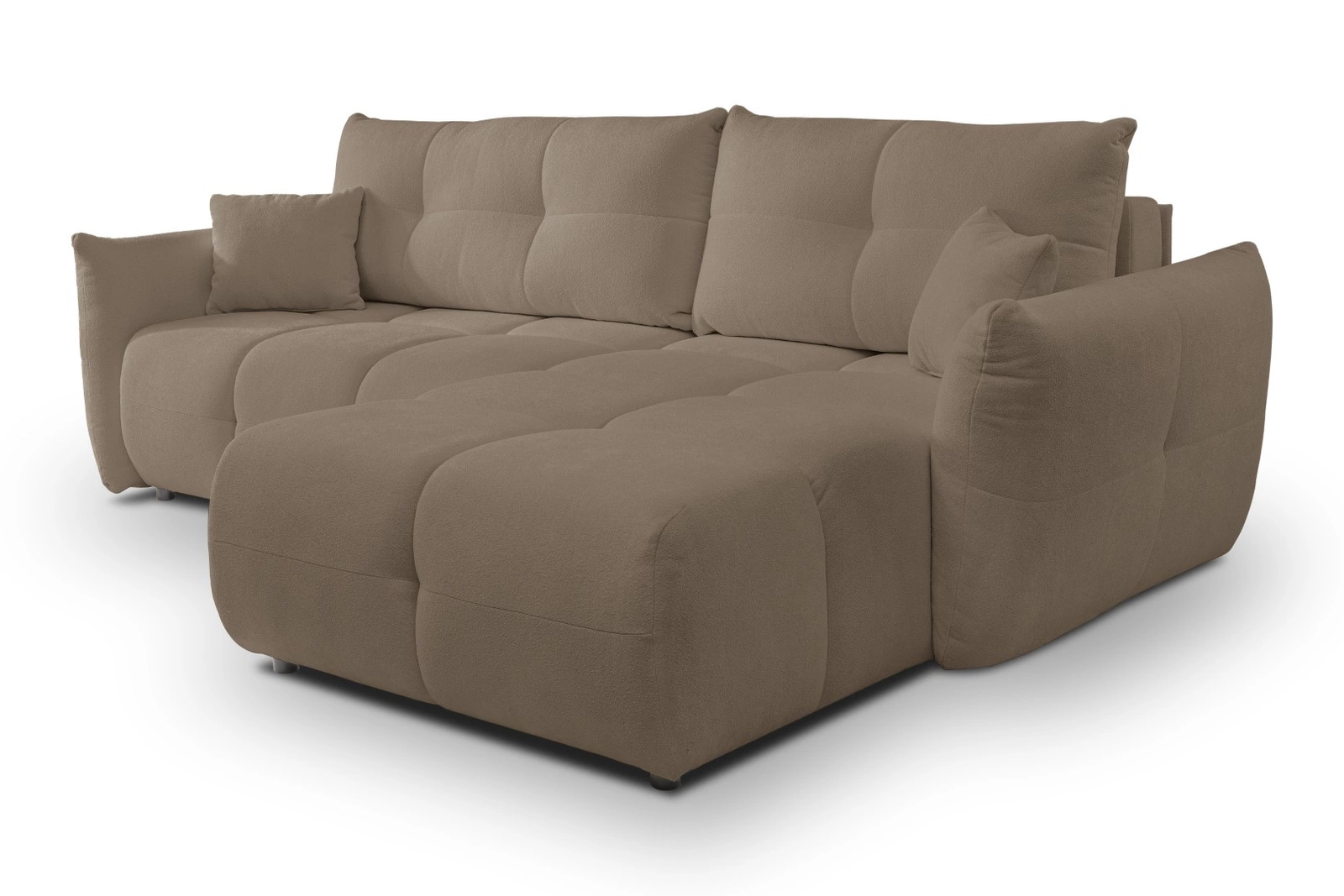 Narożnik z funkcją spania Bode marki Intesi to nowoczesny mebel wypoczynkowy do salonu o imponujących wymiarach 257 × 177 cm, wykonany w przyjemnym brązowym kolorze. Pikowane wykończenie, praktyczny pojemnik na pościel oraz wygodna powierzchnia spania 145 × 212 cm sprawiają, że ten prawy narożnik doskonale łączy styl z codzienną funkcjonalnością. Idealny do nowoczesnych wnętrz, gdzie liczy się zarówno estetyka, jak i komfort użytkowania.