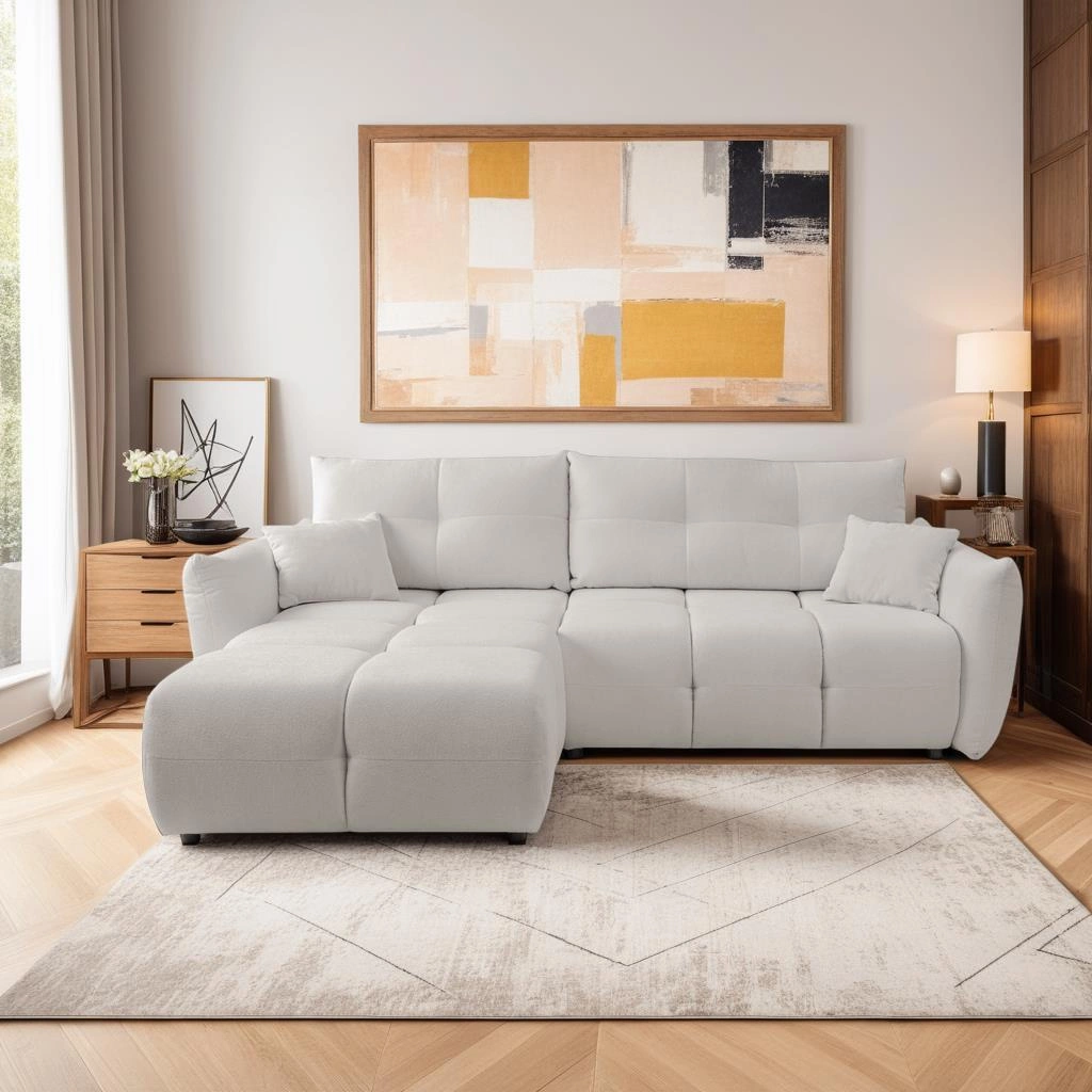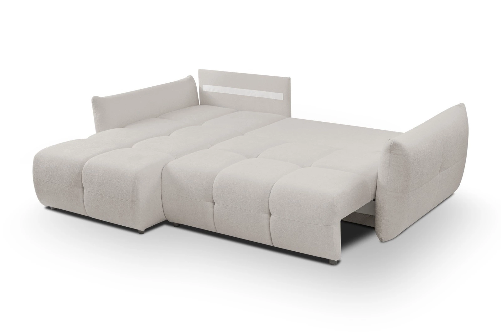 Planujesz urządzić salon, który spełni potrzeby całej rodziny? Bode Intesi to narożnik z funkcją spania, który w dzień zapewnia wygodny relaks, a wieczorem łatwo zamienia się w komfortowe łóżko do spania codziennego. Dzięki dużej powierzchni spania 145×212 cm, model ten doskonale sprawdzi się zarówno dla jednej osoby, jak i pary. Praktyczny pojemnik na pościel pozwala schować koce, poduszki czy pościel, więc utrzymanie porządku w salonie staje się wyjątkowo proste.