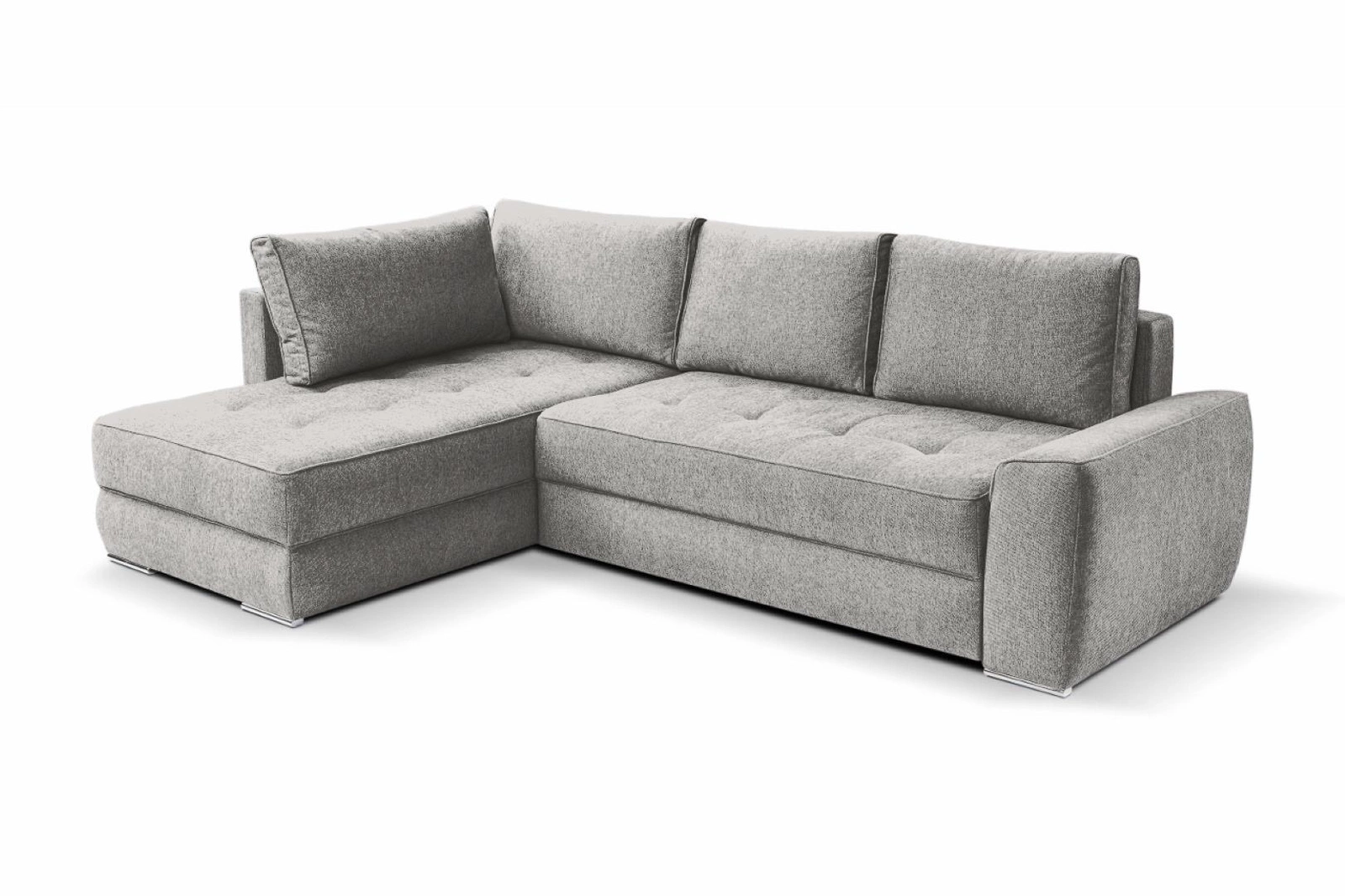Rabis to narożnik rozkładany zaprojektowany z myślą o wygodzie i elastyczności w codziennym użytkowaniu. Obustronny montaż pozwala dostosować narożnik do układu Twojego salonu – bez względu na to, czy szukasz narożnika prawego czy lewego. Dzięki dużej powierzchni spania sprawdzi się także jako wygodny narożnik do spania codziennego, zapewniając wystarczająco dużo miejsca dla dwóch osób. Szary kolor i nowoczesny styl czynią ten narożnik uniwersalnym rozwiązaniem do wnętrz minimalistycznych, skandynawskich czy loftowych.