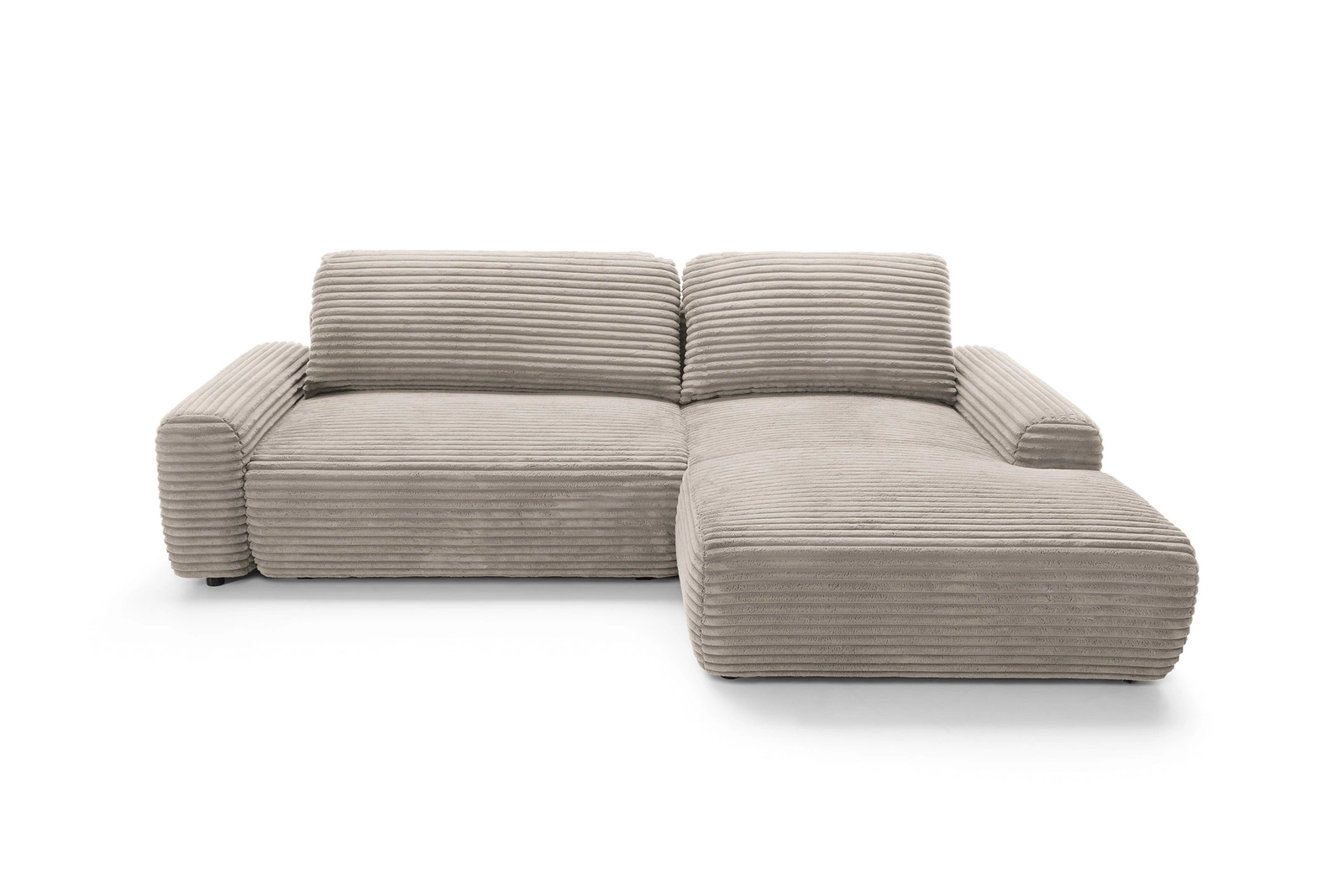 Narożnik z funkcją spania Domle marki Intesi to nowoczesny, prawostronny narożnik sztruksowy w głębokim beżu, który doskonale sprawdzi się w salonie jako mebel wypoczynkowy i codzienna kanapa do spania. Wyposażony w praktyczny pojemnik na pościel oraz dużą powierzchnię spania 210×135 cm, łączy minimalistyczny styl z wygodą użytkowania. Szerokość 280 cm i głębokość 150 cm gwarantują przestrzeń zarówno do relaksu, jak i komfortowego snu.