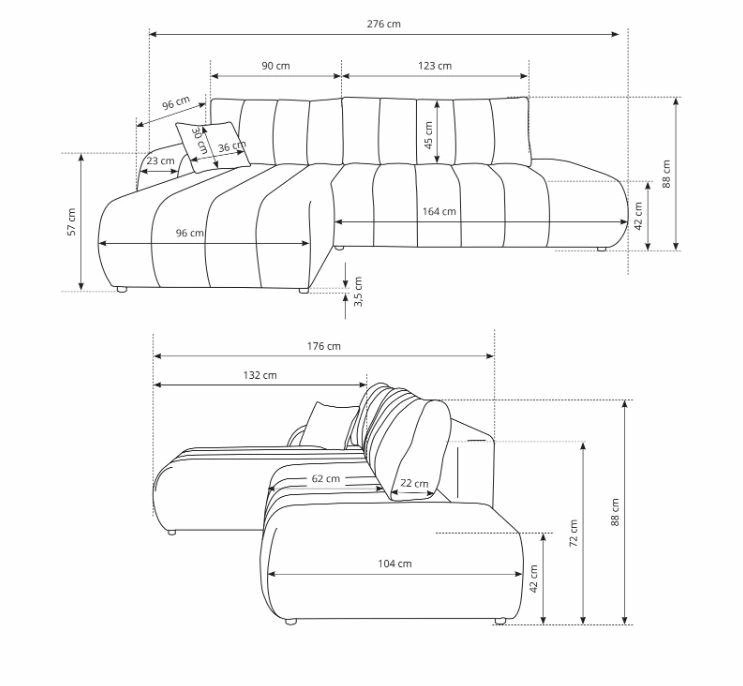 - Zdejmowane poduszki – łatwiej utrzymać narożnik w czystości oraz dopasować poziom podparcia pleców