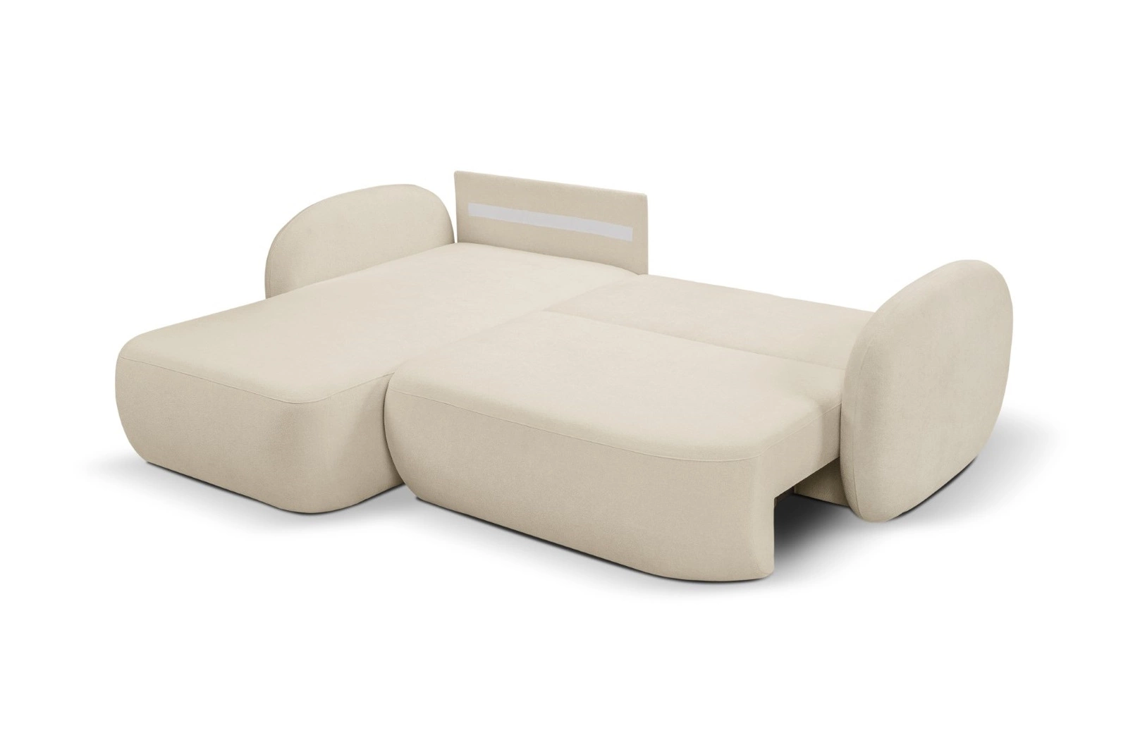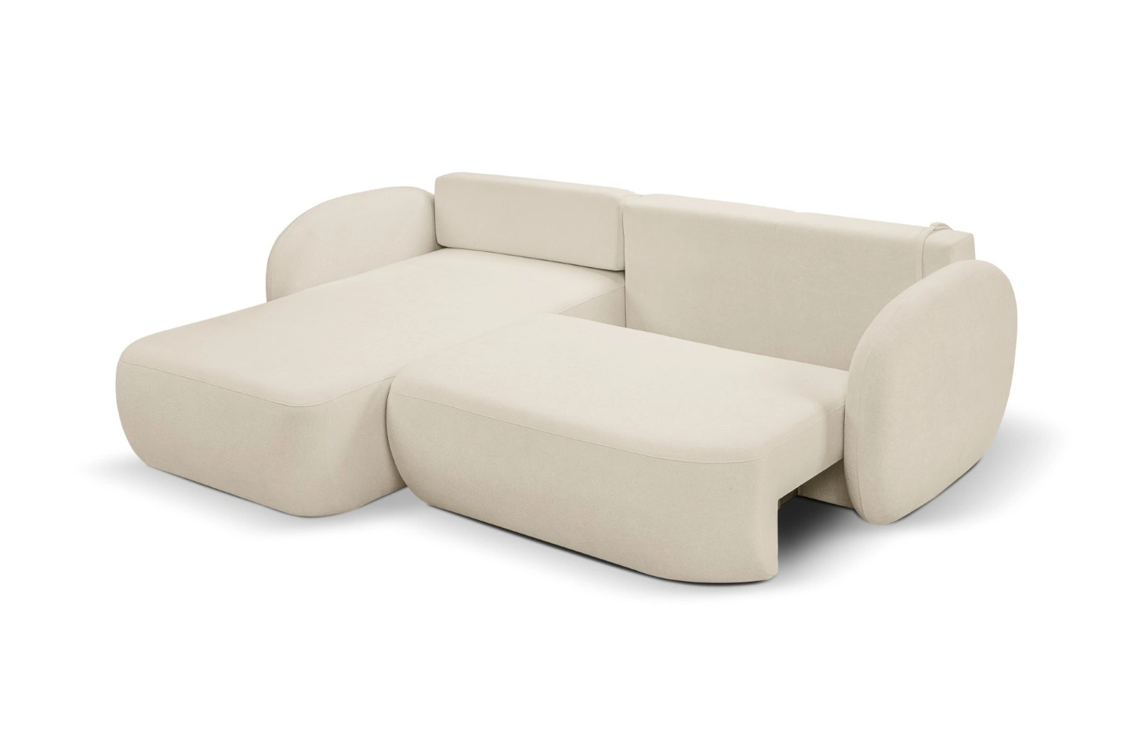 Narożnik z funkcją spania lewy Salby marki Intesi to nowoczesny mebel tapicerowany w odcieniu beżowym, stworzony z myślą o codziennym komforcie i funkcjonalności w salonie. Wykonany z dbałością o detale, oparty na solidnej konstrukcji z drewna sosnowego i wypełniony wysokoelastyczną pianką, oferuje wygodne miejsce do siedzenia oraz przestronną powierzchnię spania 138×210 cm. Praktyczny pojemnik na pościel oraz lewy układ narożnika czynią go doskonałym wyborem do nowoczesnych i skandynawskich wnętrz, gdzie liczy się zarówno styl, jak i praktyczność.