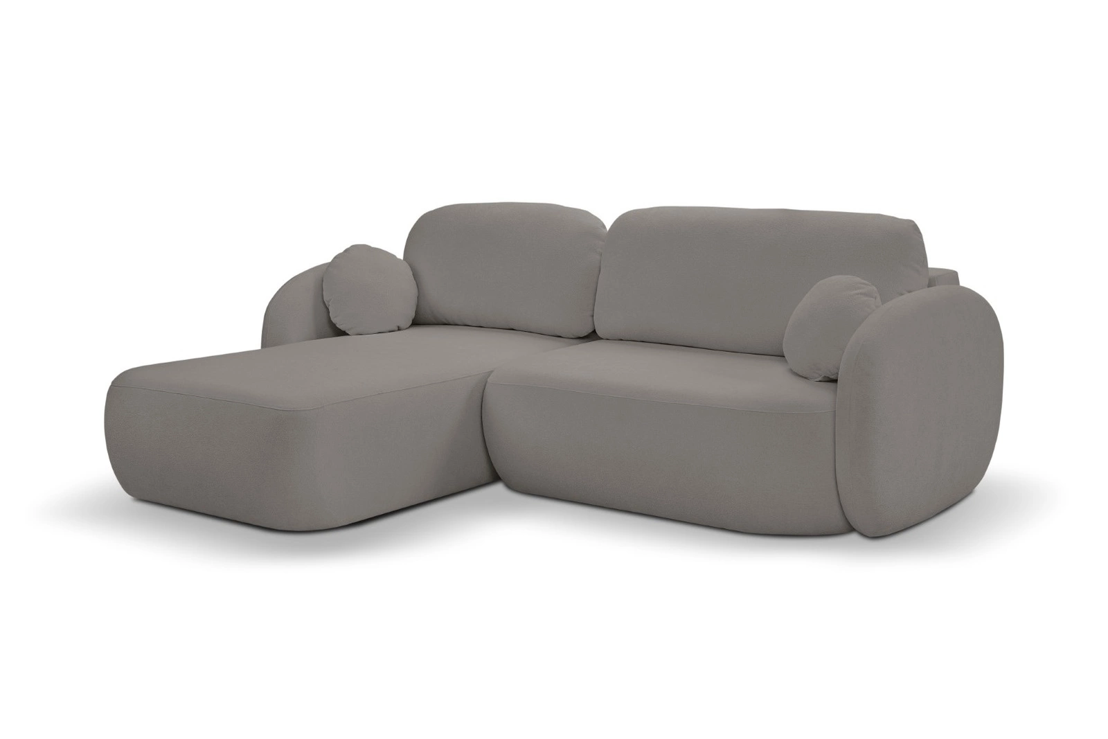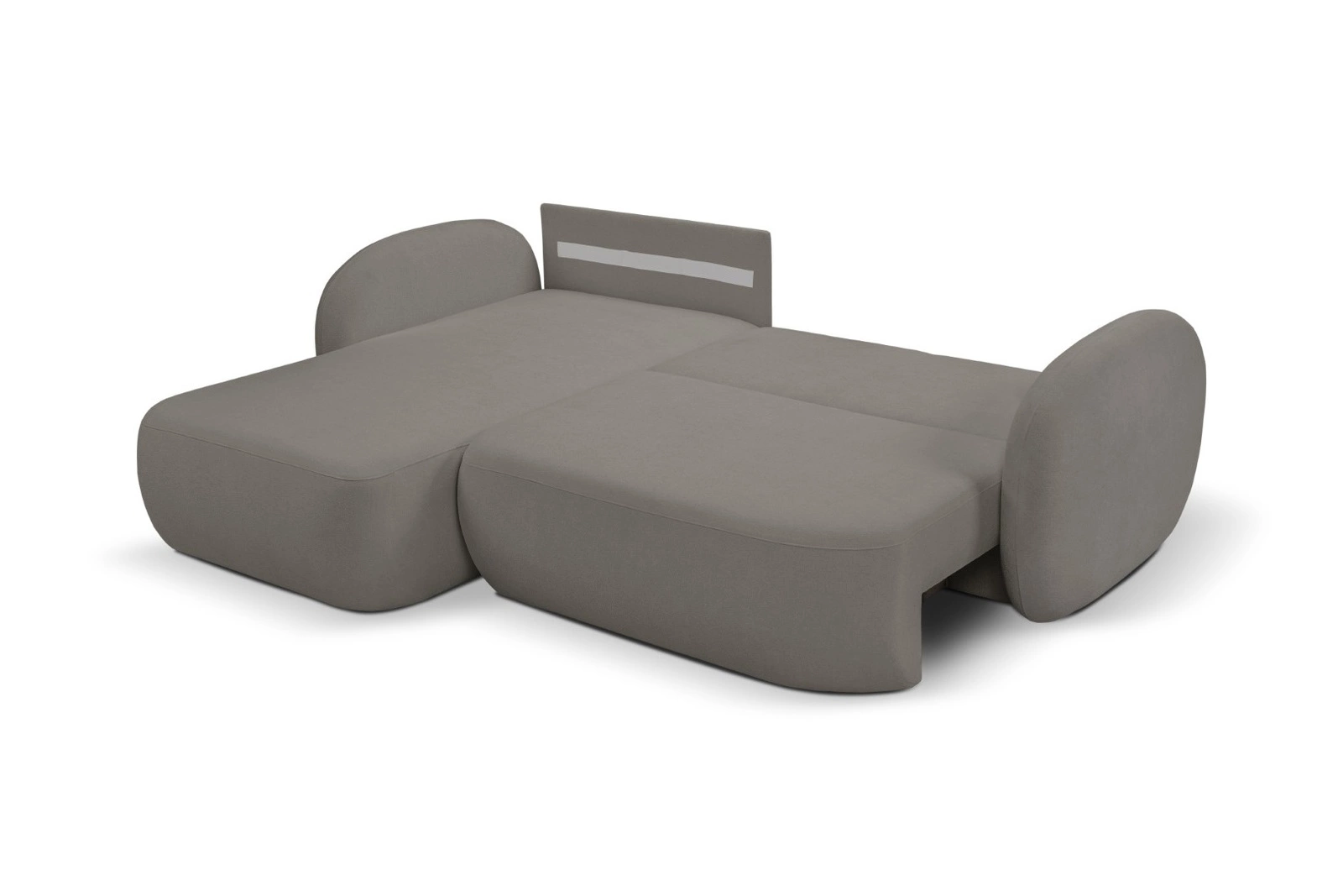 Narożnik z funkcją spania lewy Salby marki Intesi to nowoczesny mebel tapicerowany w szarym kolorze, stworzony z myślą o komforcie codziennego wypoczynku oraz praktycznym wykorzystaniu przestrzeni salonu. Wyróżnia go solidna konstrukcja z drewna sosnowego, miękkie siedzisko wypełnione wysokoelastyczną pianką i ergonomiczne podłokietniki. Dzięki powierzchni spania 138×210 cm oraz pojemnikowi na pościel, ten narożnik rozkładany idealnie sprawdzi się zarówno jako kanapa narożna do relaksu, jak i wygodne łóżko do spania na co dzień.