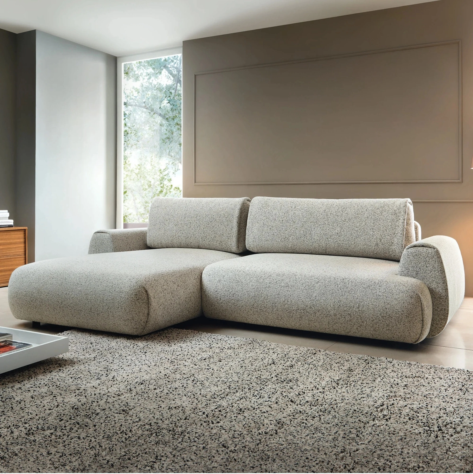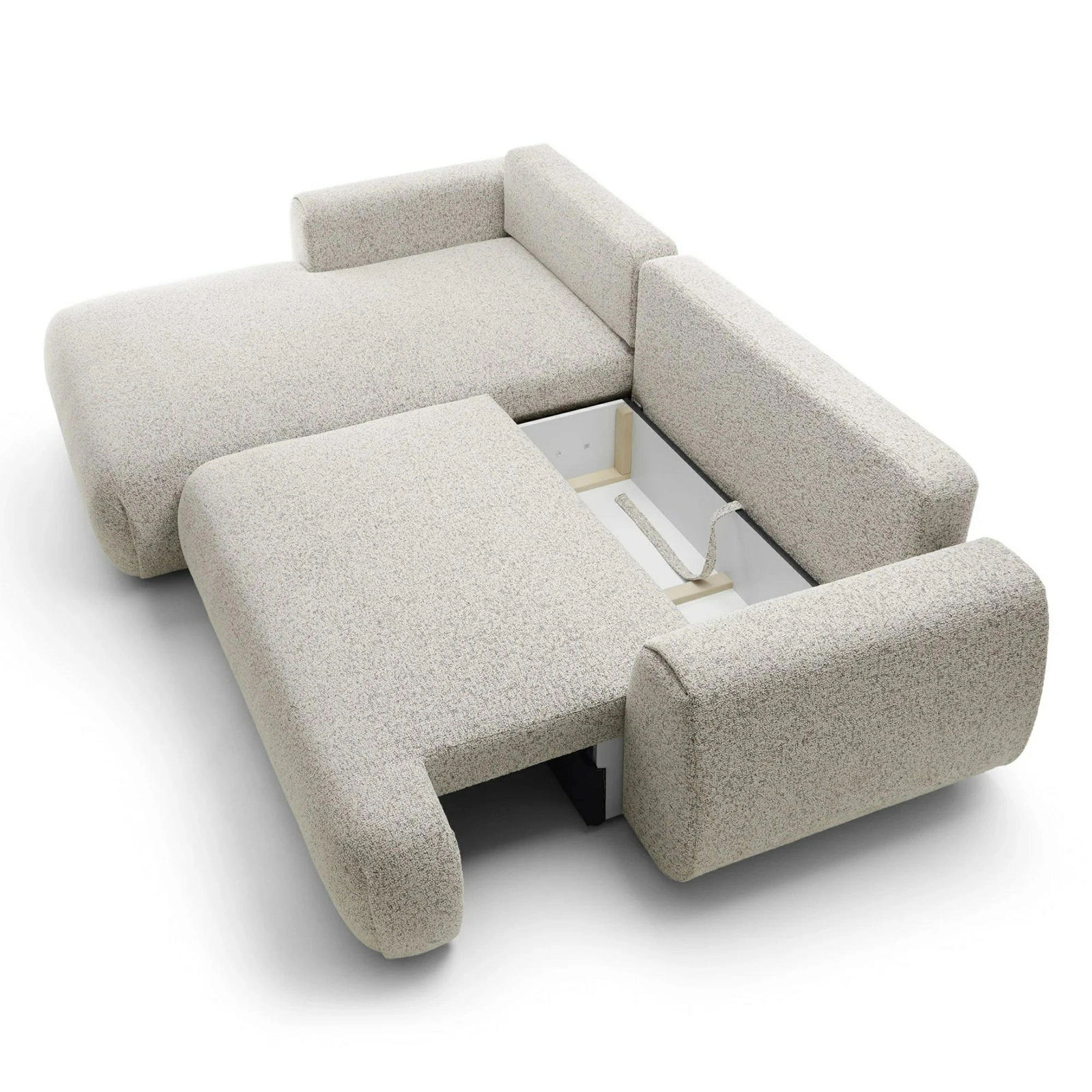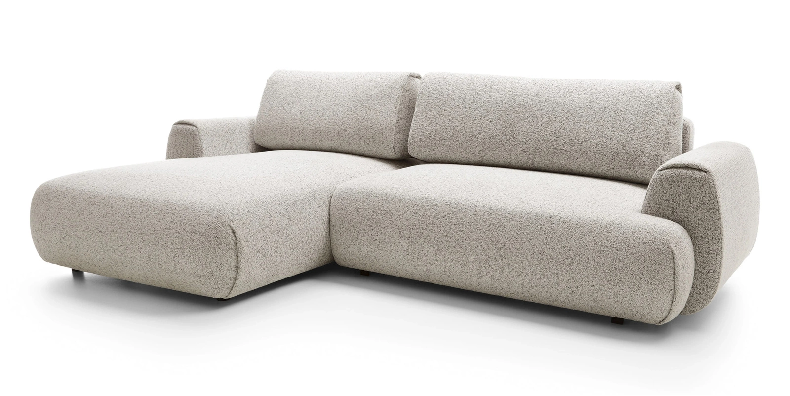 Ten nowoczesny narożnik z funkcją spania został zaprojektowany z myślą o codziennym użytkowaniu. Bezproblemowo rozłożysz go, zyskując pełnowymiarowe miejsce do snu o powierzchni 213 × 130 cm – wystarczające zarówno dla gości, jak i na co dzień. Przemyślany pojemnik na pościel pozwala na wygodne przechowywanie kołder, poduszek czy koców, pomagając utrzymać porządek i oszczędzić miejsce w szafie. Siedzisko wypełnione pianką tapicerską gwarantuje odpowiednie podparcie podczas wypoczynku i snu.