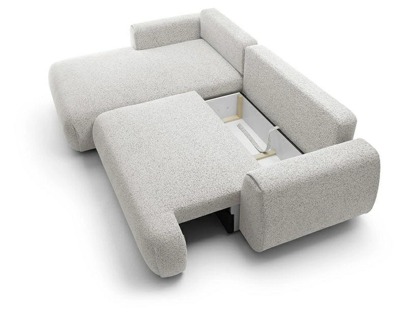 Wbudowany pojemnik na pościel pozwala na wygodne przechowywanie koców, poduszek czy sezonowej pościeli. Dzięki temu narożnik Ljung nie tylko oszczędza miejsce, ale również pomaga utrzymać porządek w salonie. To szczególnie praktyczne rozwiązanie w mieszkaniach o ograniczonej przestrzeni, gdzie każdy centymetr ma znaczenie.