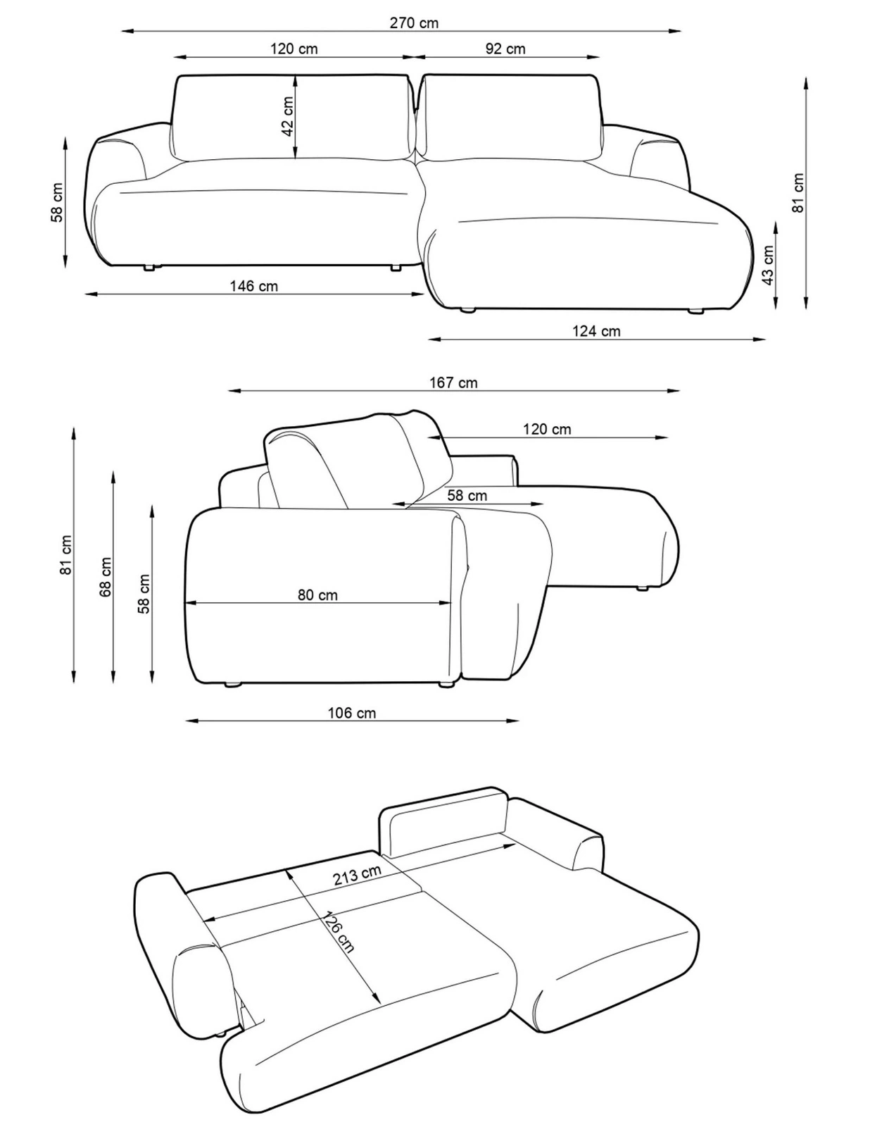 Model Ljung to narożnik rozkładany, który w kilku ruchach zamienia się w wygodne łóżko o powierzchni 213×130 cm. To doskonałe rozwiązanie dla osób poszukujących narożnika do spania codziennego lub okazjonalnego – zarówno dla domowników, jak i gości. Wypełnienie z pianki tapicerskiej gwarantuje sprężystość oraz komfort podczas siedzenia i snu, a wysokość siedziska 43 cm ułatwia wstawanie nawet osobom starszym.