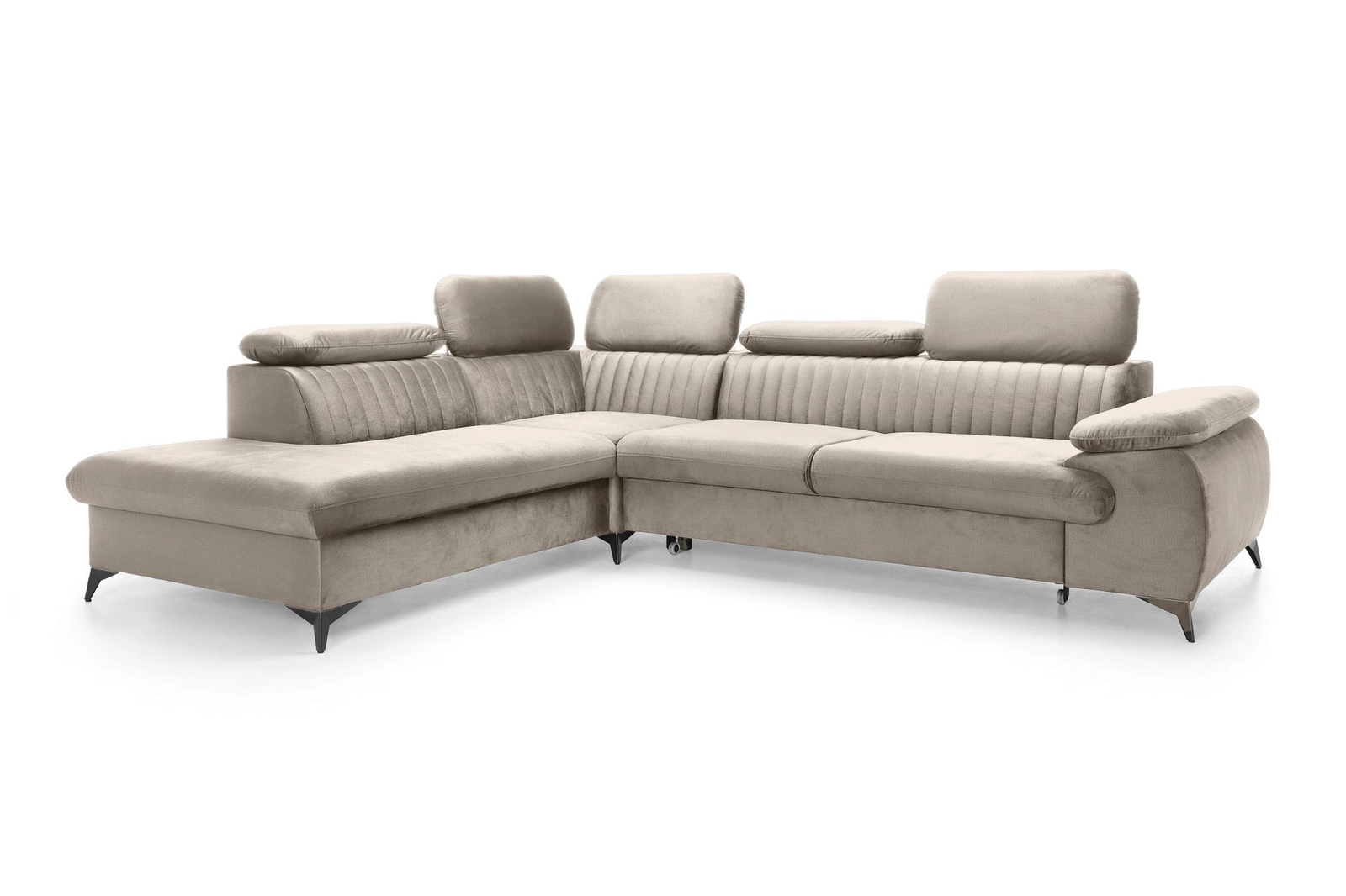 Narożnik z funkcją spania Lund L lewy marki Intesi to nowoczesny mebel do salonu, który wyróżnia się minimalistycznym designem, wysokim komfortem użytkowania i przemyślaną funkcjonalnością. Wykonany z wyjątkowo przyjemnej w dotyku tkaniny Monolith w modnym beżowym kolorze, oferuje szeroką powierzchnię do siedzenia (275×177 cm) oraz wygodne miejsce do spania codziennego o wymiarze aż 194×124 cm. Zintegrowany pojemnik na pościel oraz regulowane zagłówki czynią ten narożnik idealnym wyborem do współczesnych wnętrz.