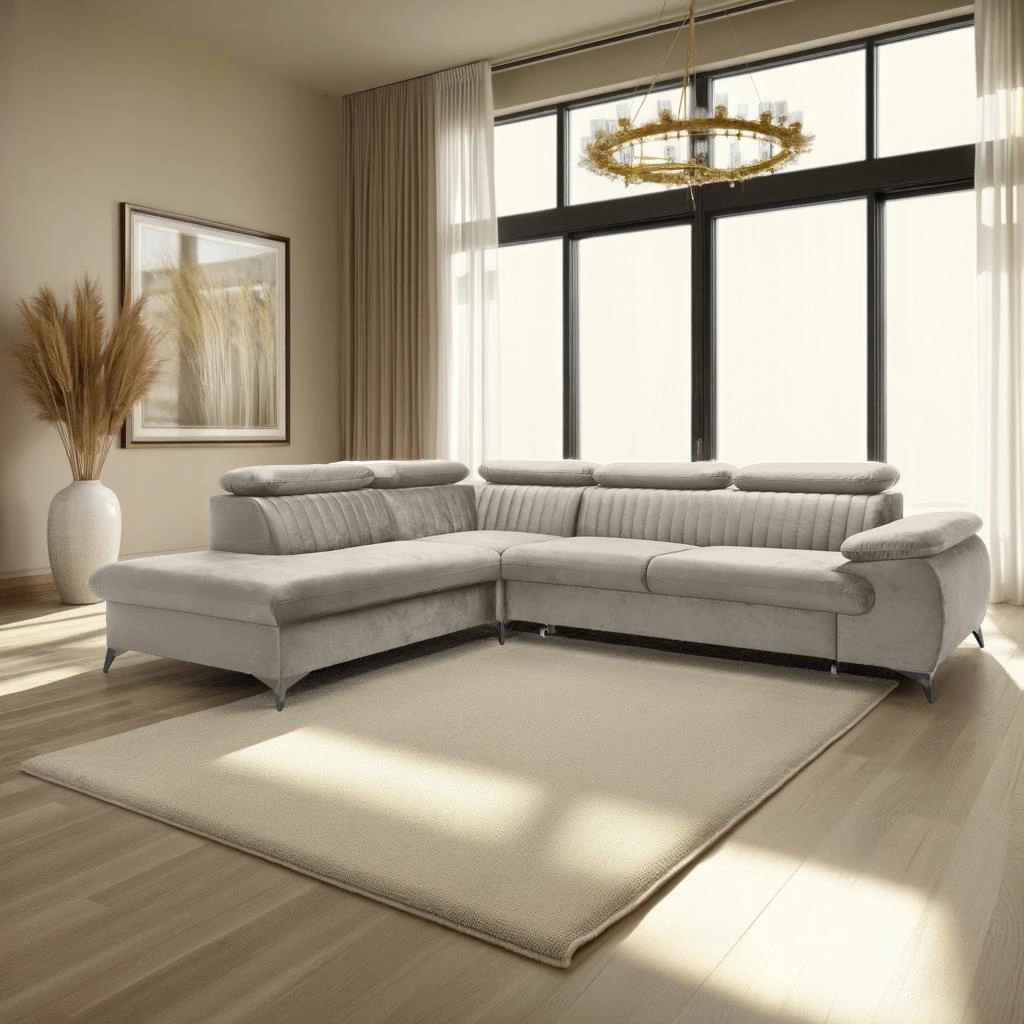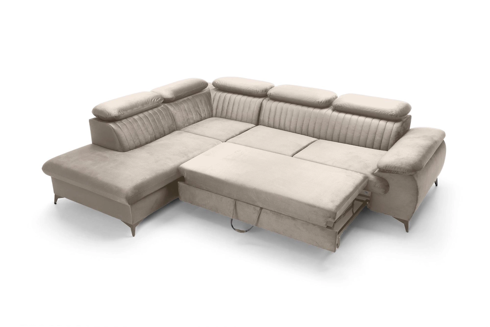 - Rozkładany narożnik z funkcją spania – wygodne łóżko zawsze pod ręką, doskonałe do codziennego użytku i dla gości