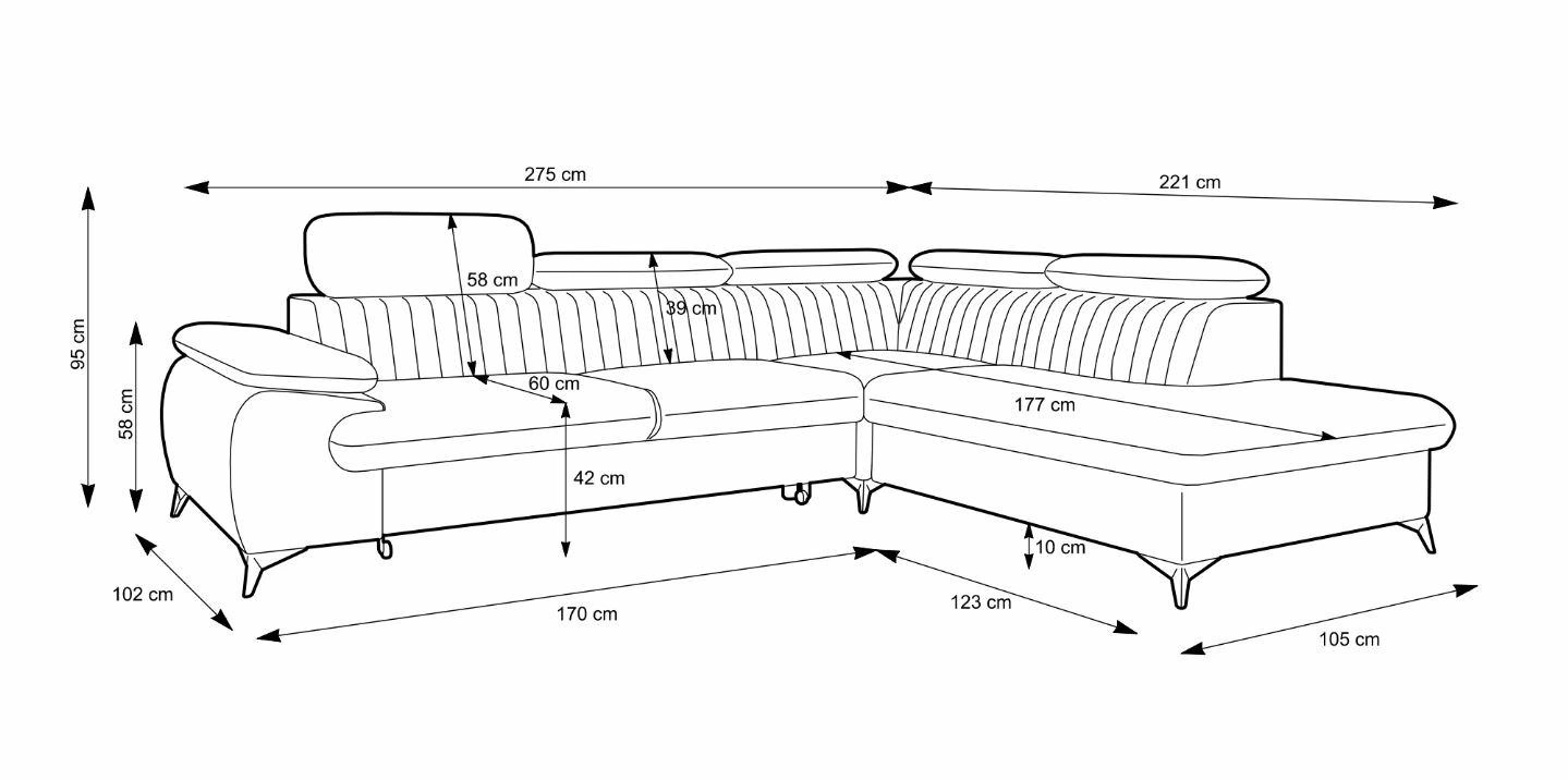 - Optymalne wymiary (275×177 cm) – narożnik do salonu, który zapewnia wygodę nawet dla kilku osób
