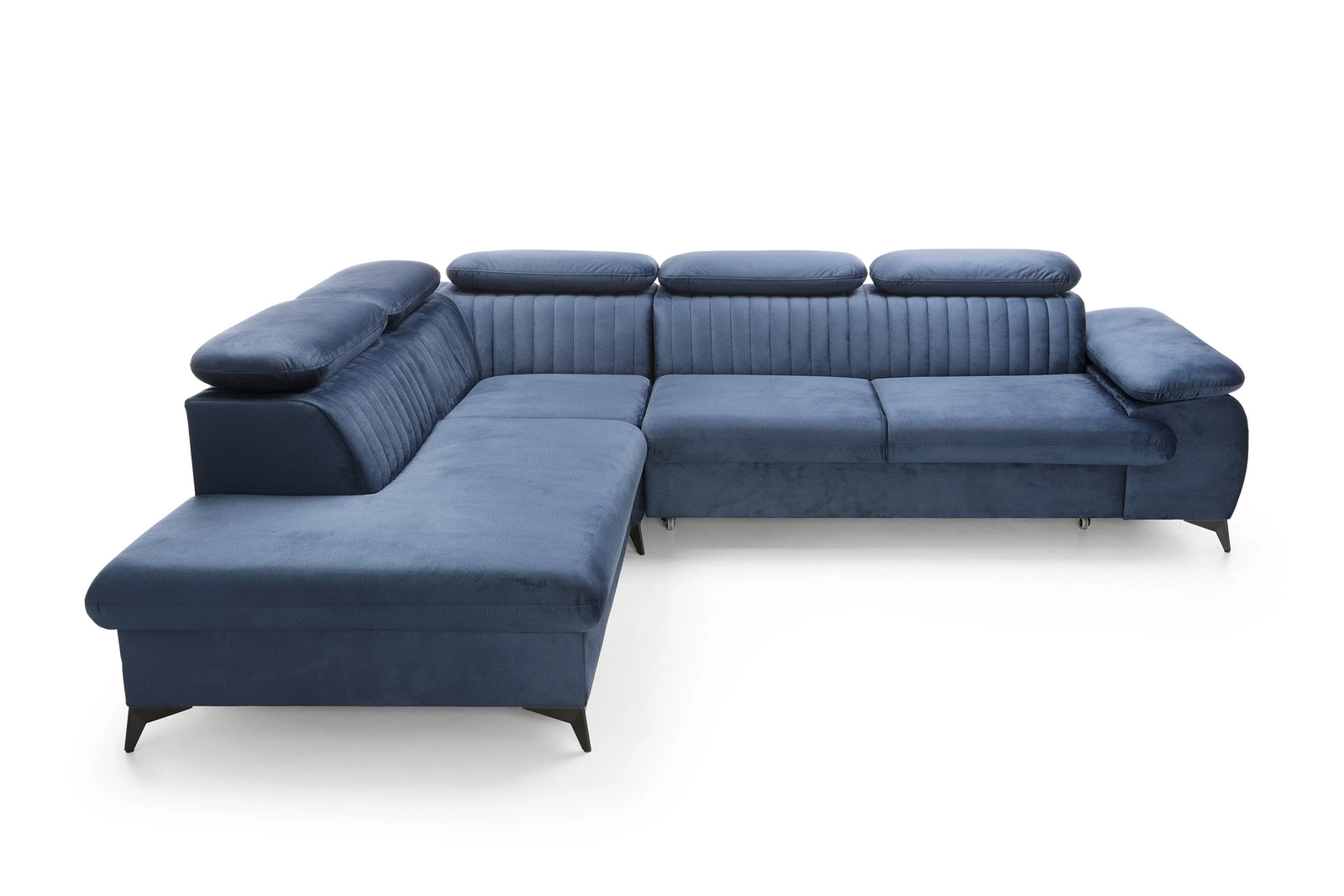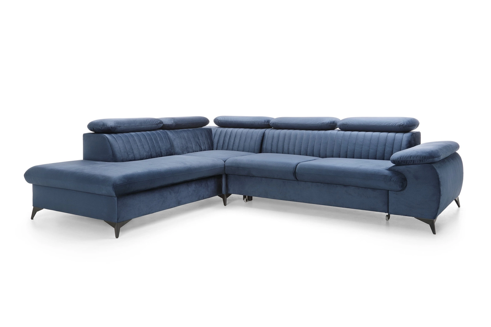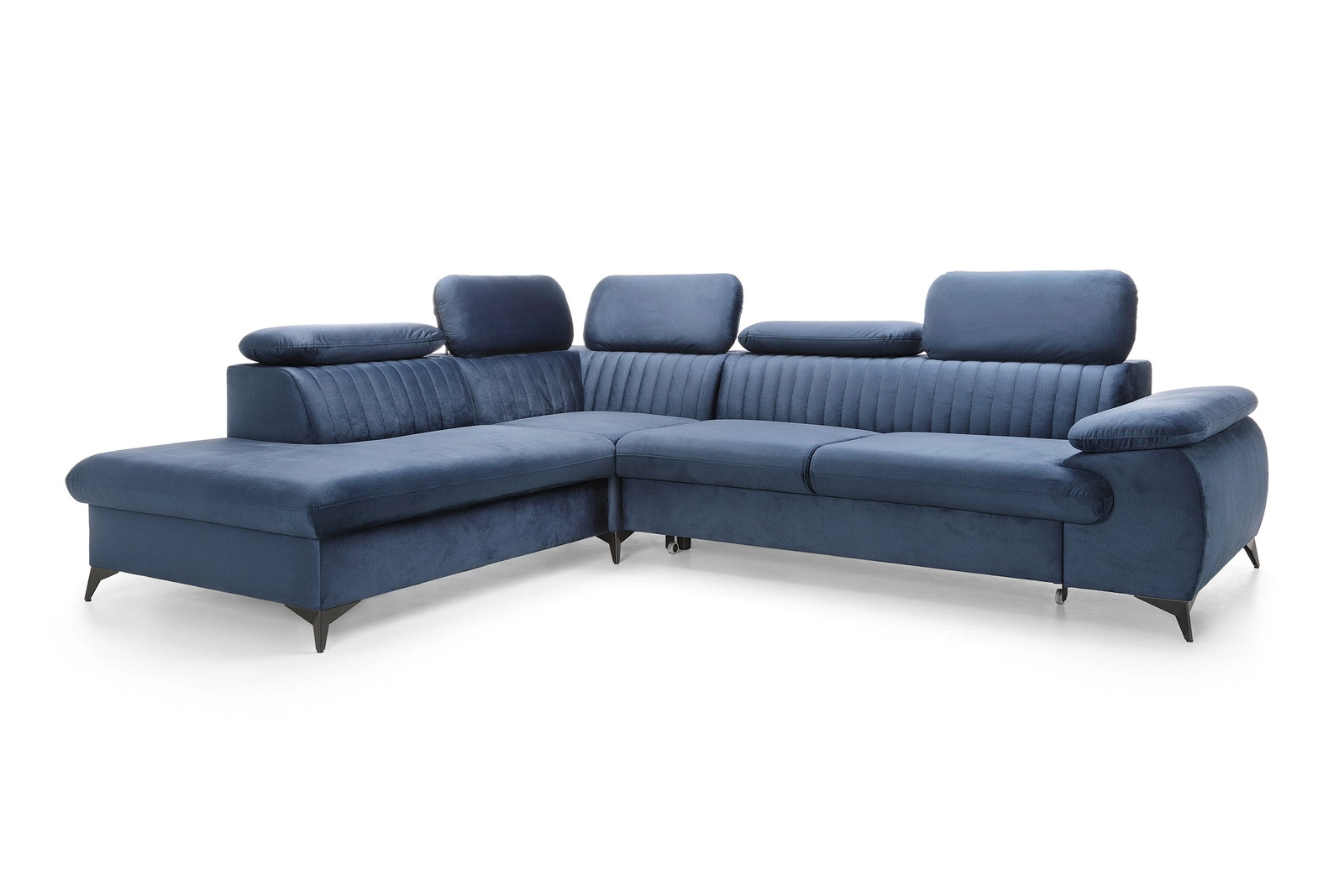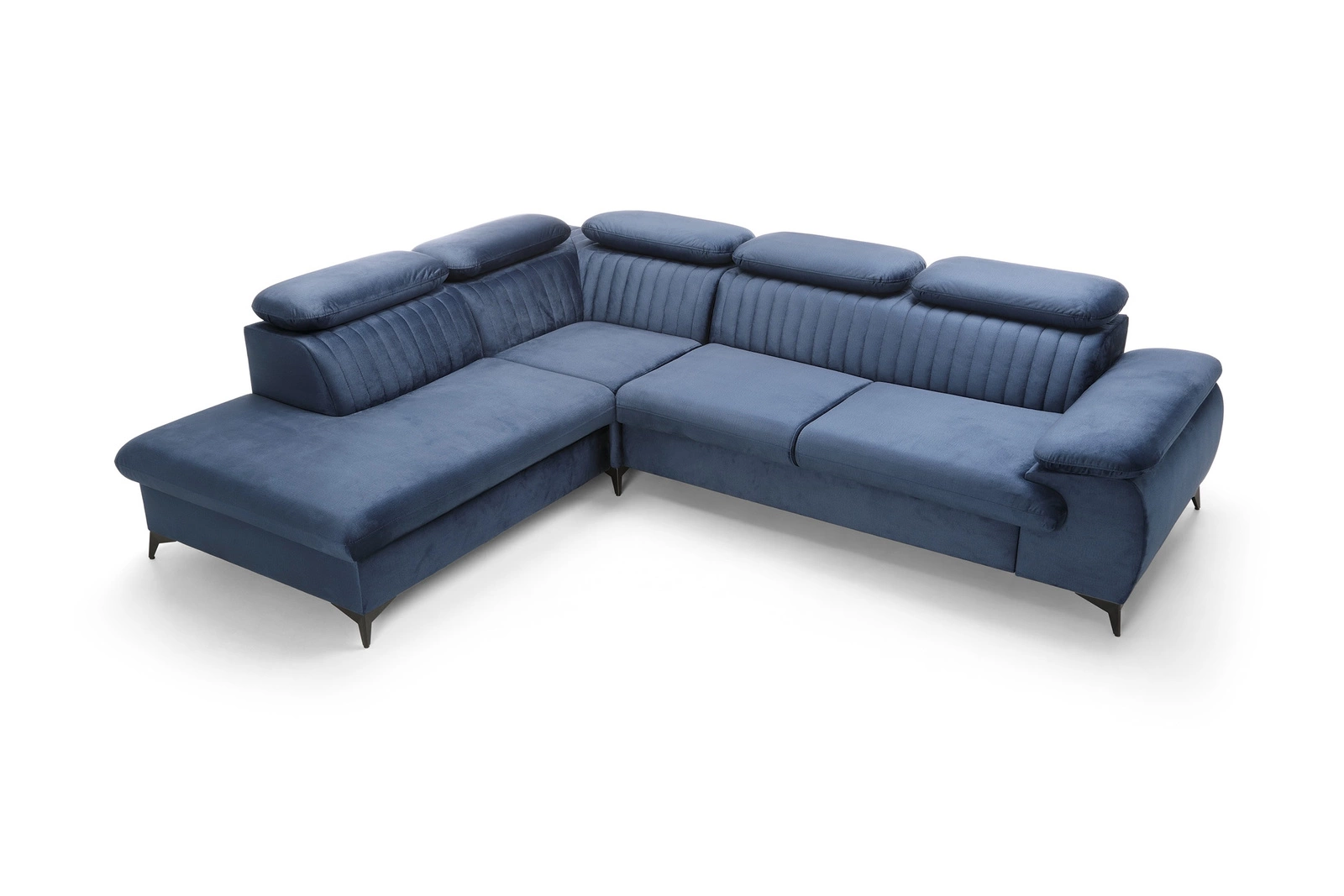 Narożnik Lund L lewy granatowy marki Intesi to przemyślany wybór, jeśli szukasz nowoczesnego narożnika z funkcją spania, który odmieni Twój salon i zapewni wygodę na co dzień.