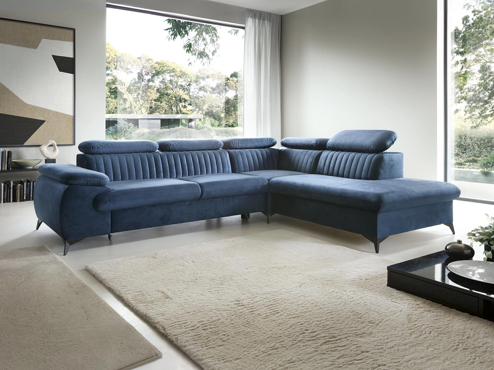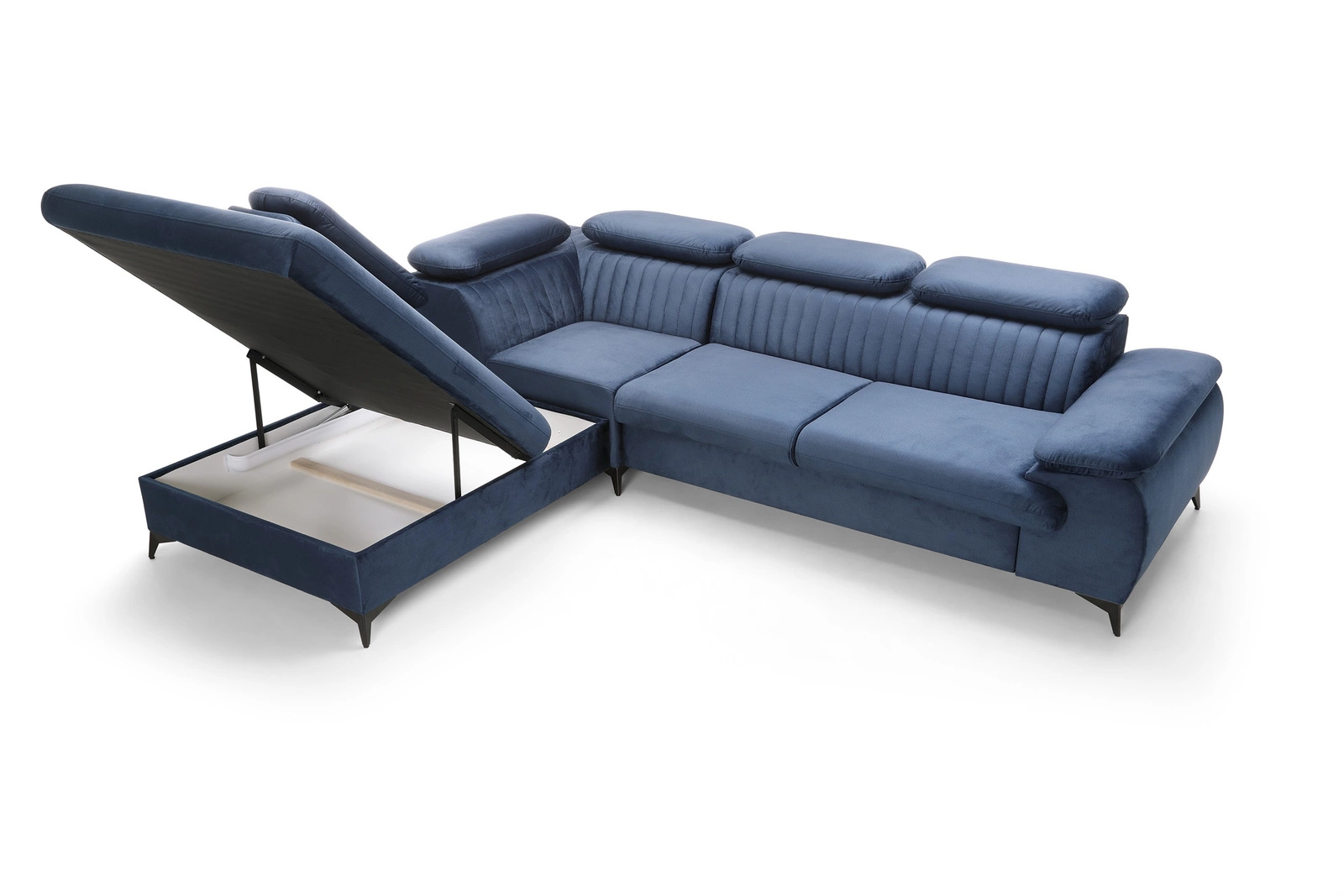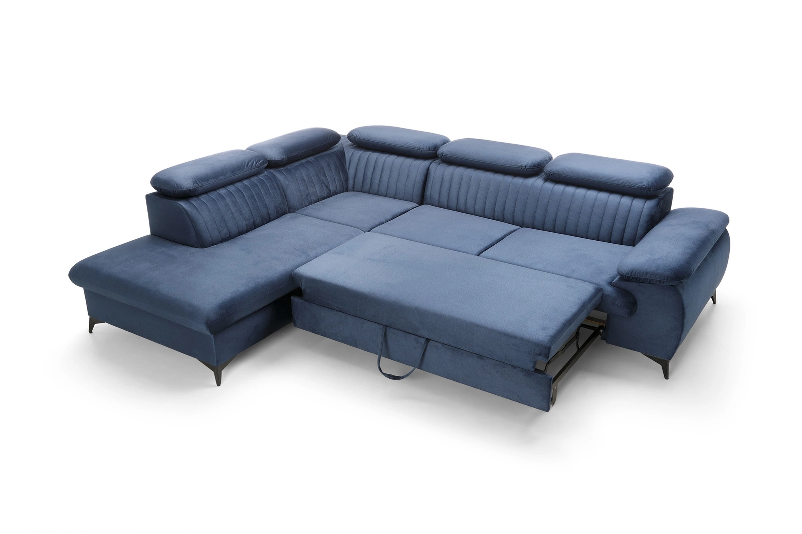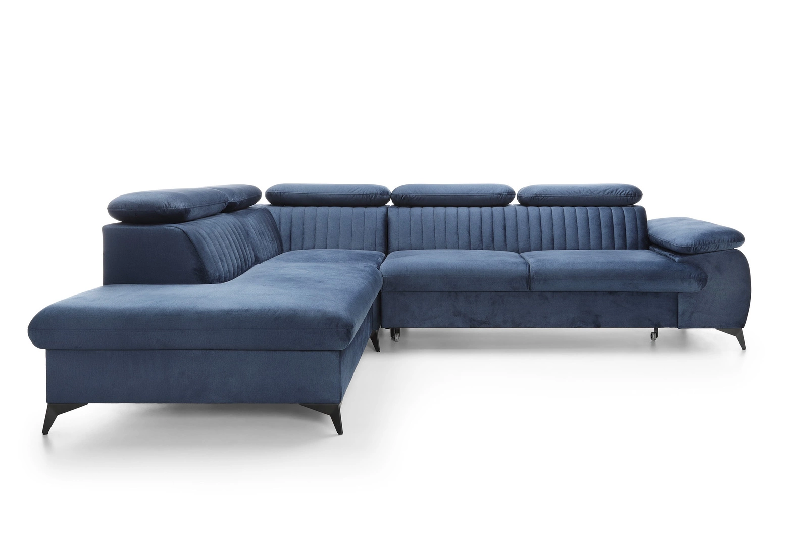 Narożnik Lund L lewy granatowy marki Intesi to przemyślany wybór, jeśli szukasz nowoczesnego narożnika z funkcją spania, który odmieni Twój salon i zapewni wygodę na co dzień.