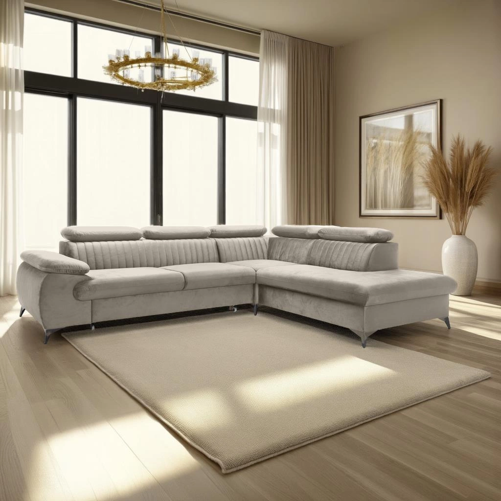 Narożnik z funkcją spania Lund L prawy marki Intesi to nowoczesny mebel tapicerowany w modnym beżowym kolorze, który doskonale dopełni przestrzeń salonu. Wyróżnia się praktycznym pojemnikiem na pościel, regulowanym oparciem z zagłówkami oraz dużą powierzchnią spania 194×124 cm. Minimalistyczny design i wytrzymała tkanina sprawiają, że narożnik Lund L to połączenie wygody, funkcjonalności i stylowego wyglądu.