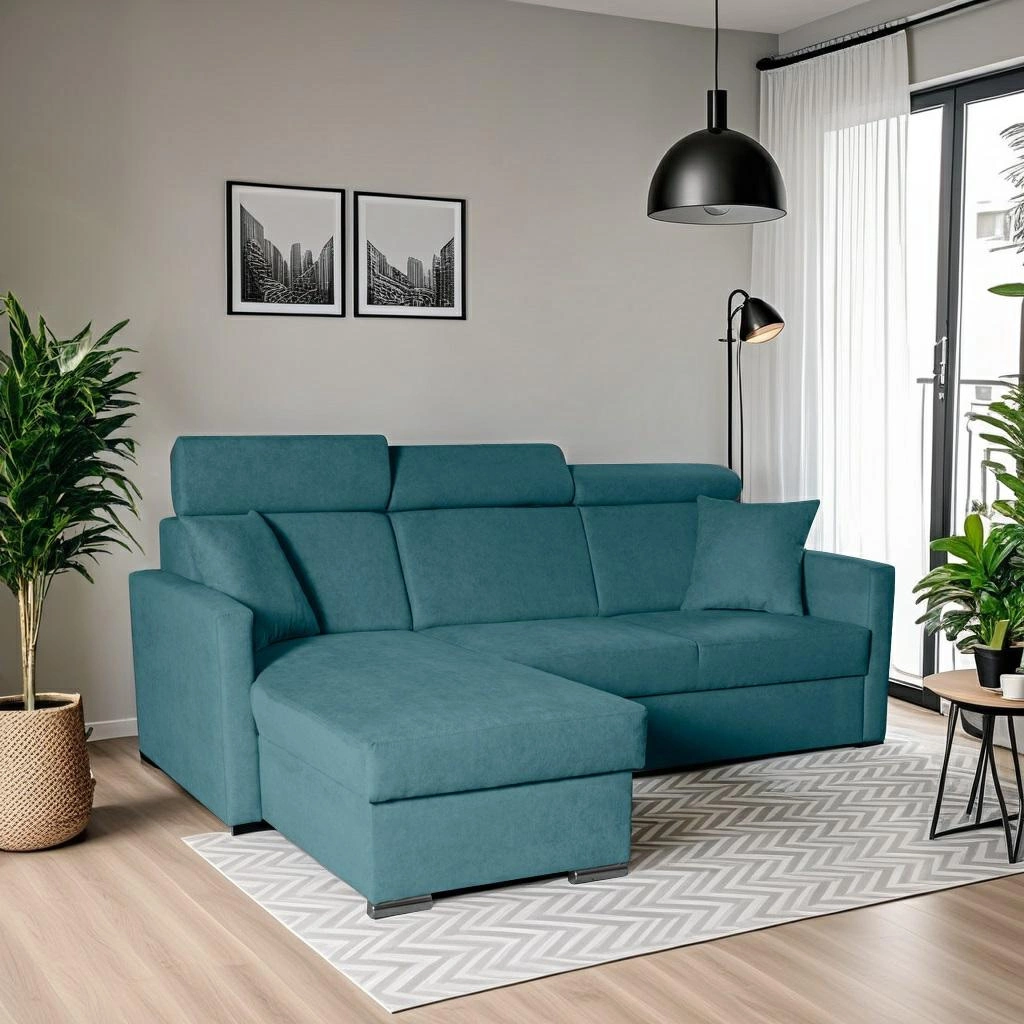 Narożnik Mils morski marki Intesi to doskonały wybór do nowoczesnych wnętrz, gdzie liczy się zarówno estetyka, jak i praktyczne rozwiązania. Ten narożnik z funkcją spania świetnie sprawdzi się jako codzienne miejsce do wypoczynku i okazjonalne łóżko dla gości. Jeśli szukasz modnego, wygodnego i funkcjonalnego narożnika do salonu, model Mils spełni oczekiwania nawet najbardziej wymagających użytkowników.