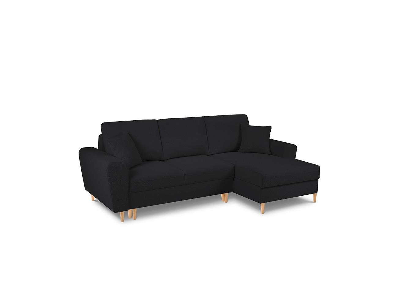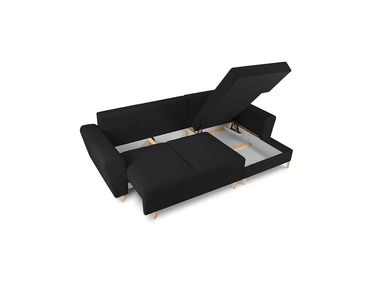 Narożnik z funkcją spania Moghan Black Boucle Prawostronna kolor nóg naturalny