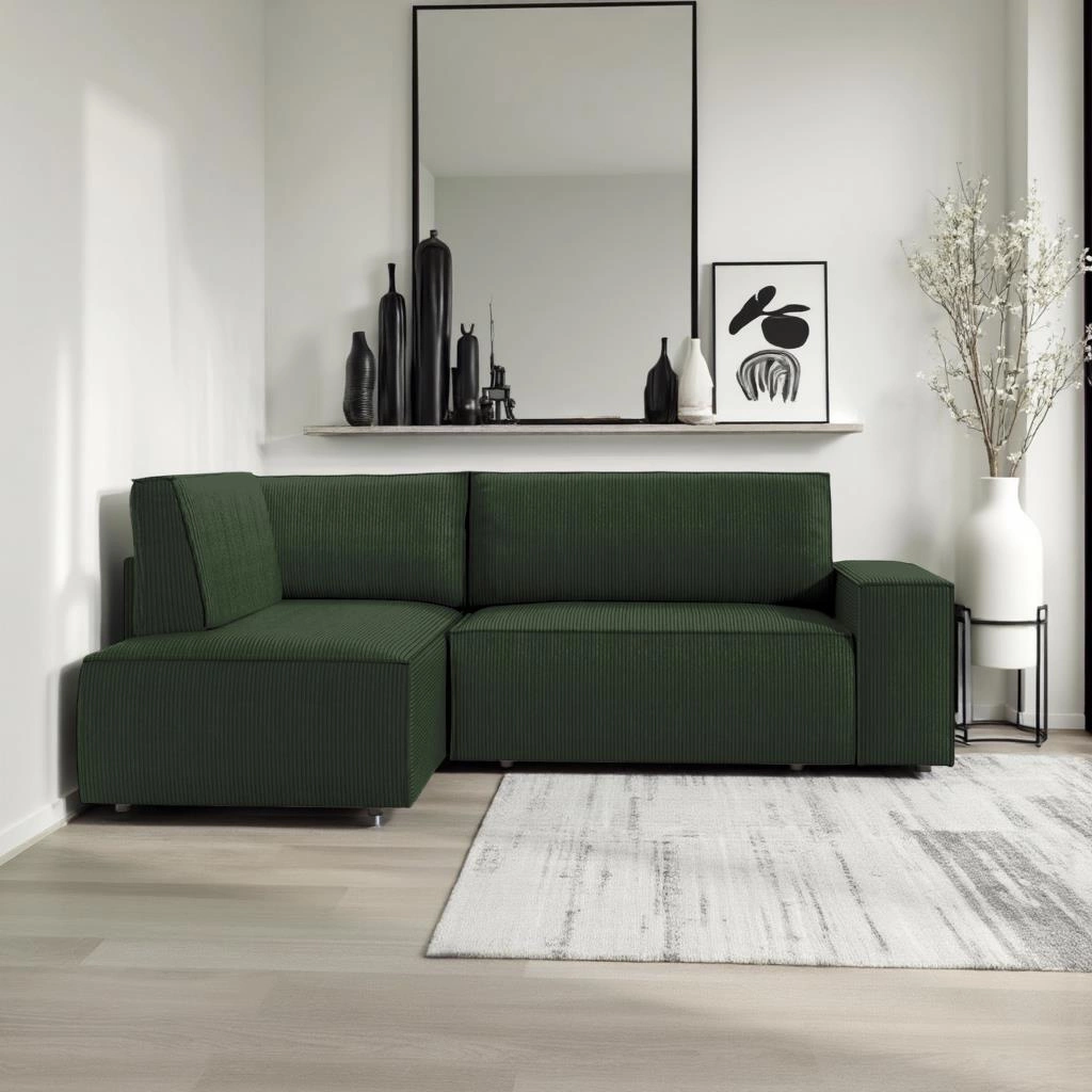 Molde L lewy przyciąga wzrok szerokim, nowoczesnym siedziskiem oraz charakterystycznym, wyrazistym sztruksem, który nie tylko pięknie wygląda, ale także zapewnia przyjemne w dotyku wykończenie. Narożnik rozkładany dedykowany jest do salonu, gdzie liczy się zarówno funkcjonalność, jak i stylowy wygląd. Doskonale sprawdzi się w przestrzeniach urządzonych w duchu skandynawskim lub nowoczesnym, stanowiąc centralny punkt aranżacji.