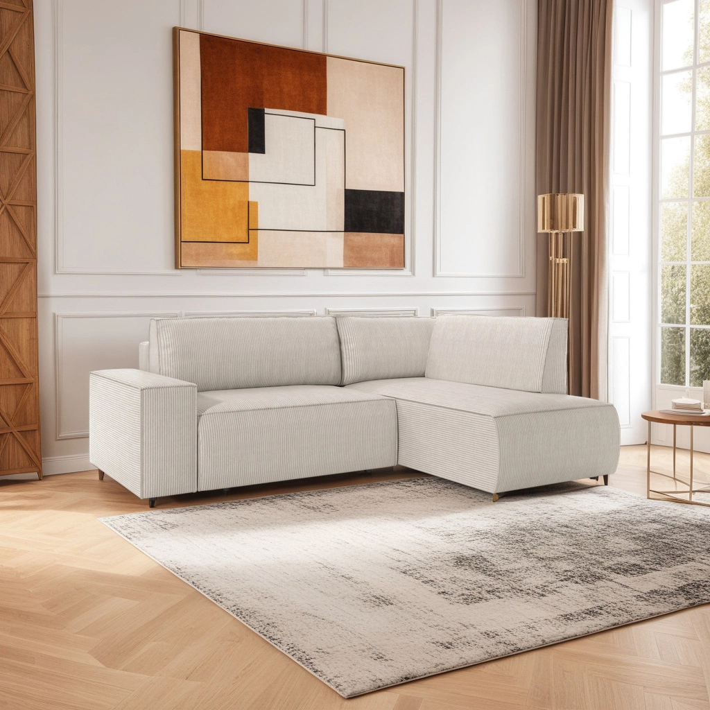 - Miękka, sztruksowa tkanina – przytulny wygląd i komfort użytkowania każdego dnia