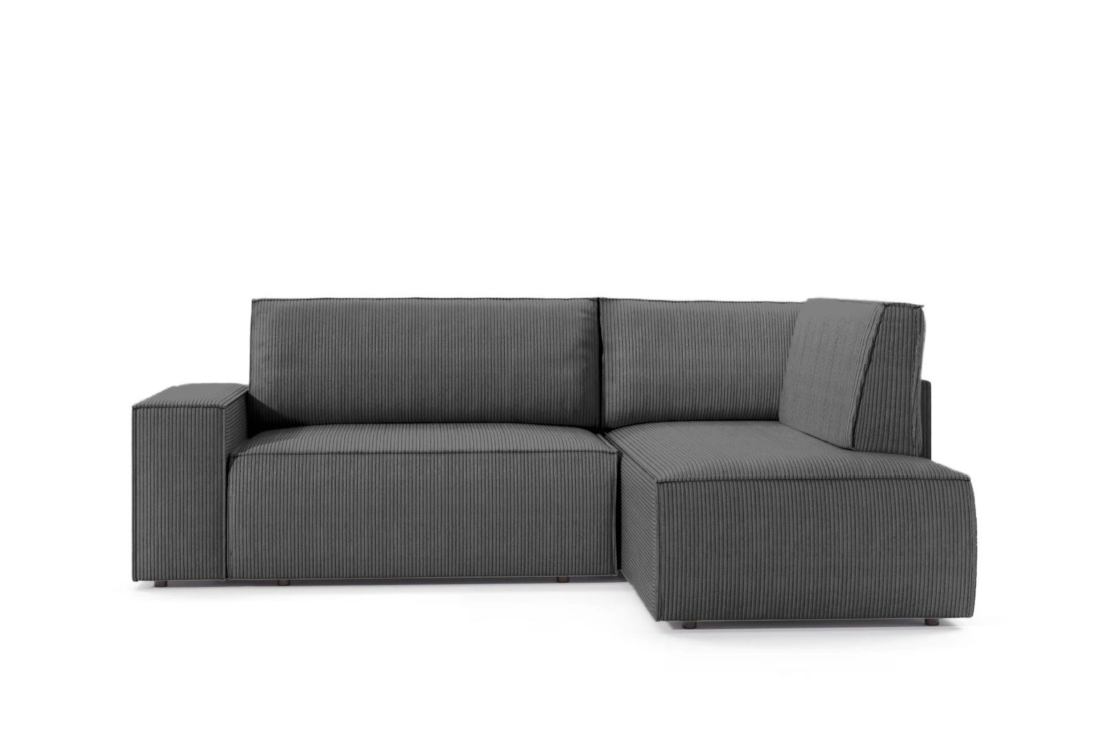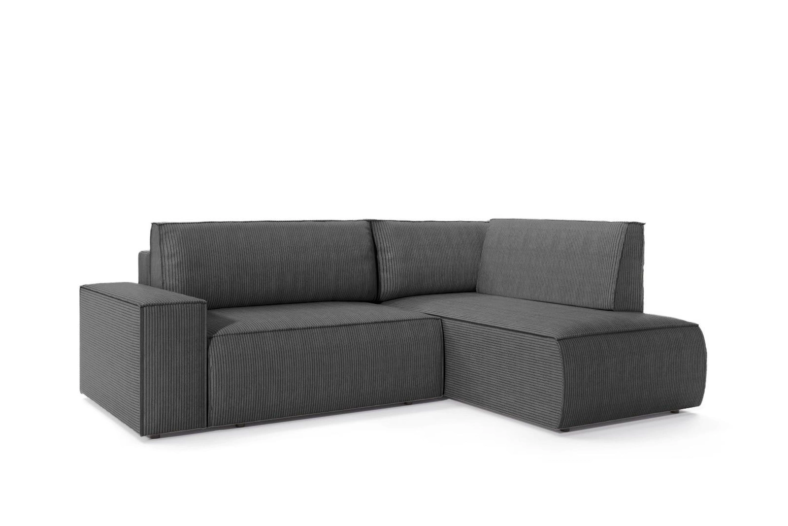Wykończenie wysokogatunkową tkaniną sztruksową w głębokim odcieniu szarości sprawia, że narożnik Molde L prawy zachwyca nie tylko wyglądem, ale również przyjemnością użytkowania. Miękka faktura materiału jest odporna na codzienne użytkowanie, a zarazem łatwa do utrzymania w czystości. Tapicerka została starannie dobrana, by zapewnić nie tylko estetykę, lecz także trwałość – dzięki czemu narożnik będzie cieszył oko i zapewniał wygodę przez wiele lat.