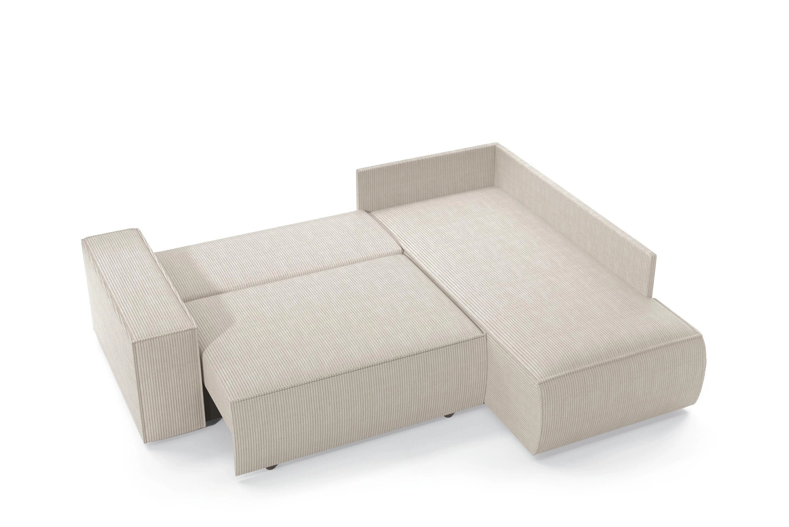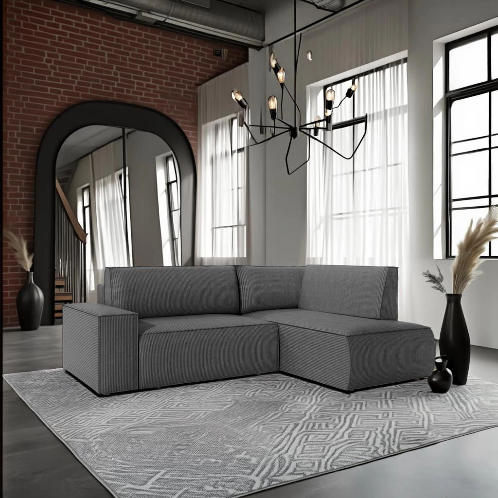 - Prawostronny układ L – idealny do ustawienia w rogu pokoju, maksymalizując przestrzeń wypoczynkową