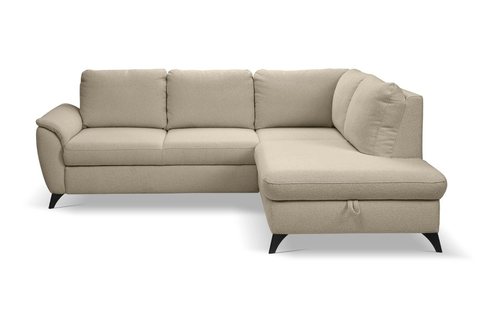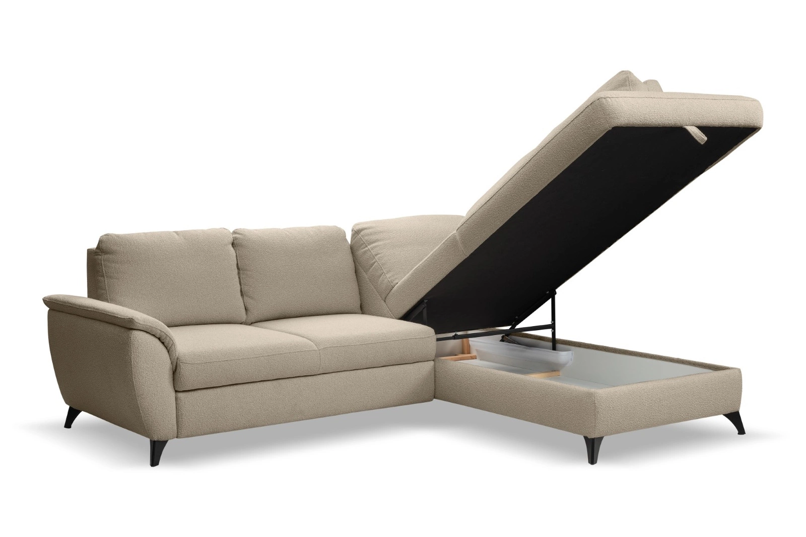 Narożnik z funkcją spania Nevada beżowy prawy marki Intesi to połączenie nowoczesnego designu, wygody oraz praktycznych rozwiązań do salonu. Tapicerowany przyjemną w dotyku tkaniną Loop 8 w odcieniu beżu, oferuje aż 244 cm szerokości i 202 cm głębokości, zapewniając miejsce dla trzech osób, a po rozłożeniu – komfortową powierzchnię spania 128×185 cm. Model wyposażony jest w praktyczny pojemnik na pościel, stabilne czarne nóżki oraz funkcjonalne podłokietniki, idealnie wpisując się w potrzeby współczesnych wnętrz.