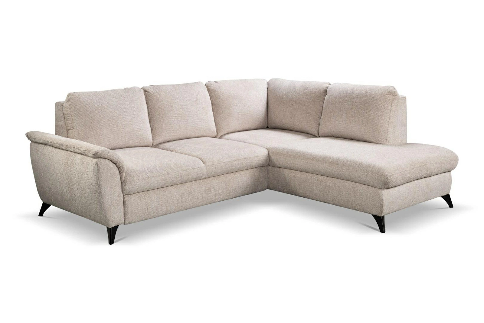 Narożnik z funkcją spania Nevada marki Intesi to nowoczesny, prawostronny narożnik do salonu w eleganckim beżowym kolorze. Oferuje wygodne miejsce do siedzenia dla trzech osób, rozkładaną powierzchnię spania o wymiarach 128×185 cm oraz praktyczny pojemnik na pościel. Wyróżnia się lekką formą, stabilną konstrukcją na pięciu nogach oraz tapicerką z tkaniny, która doskonale wpisuje się w aktualne trendy aranżacyjne.