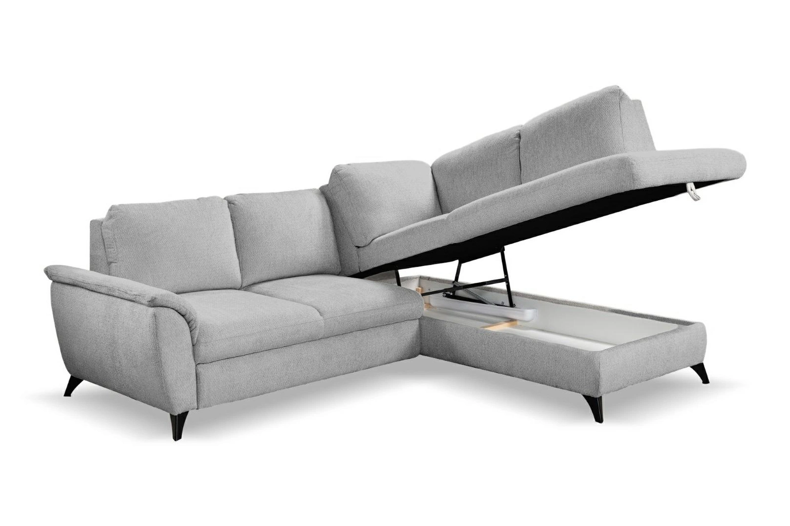 - Rozkładany narożnik z dużą powierzchnią spania (128×185 cm) – zapewnia komfortowy sen na co dzień lub dla gości
