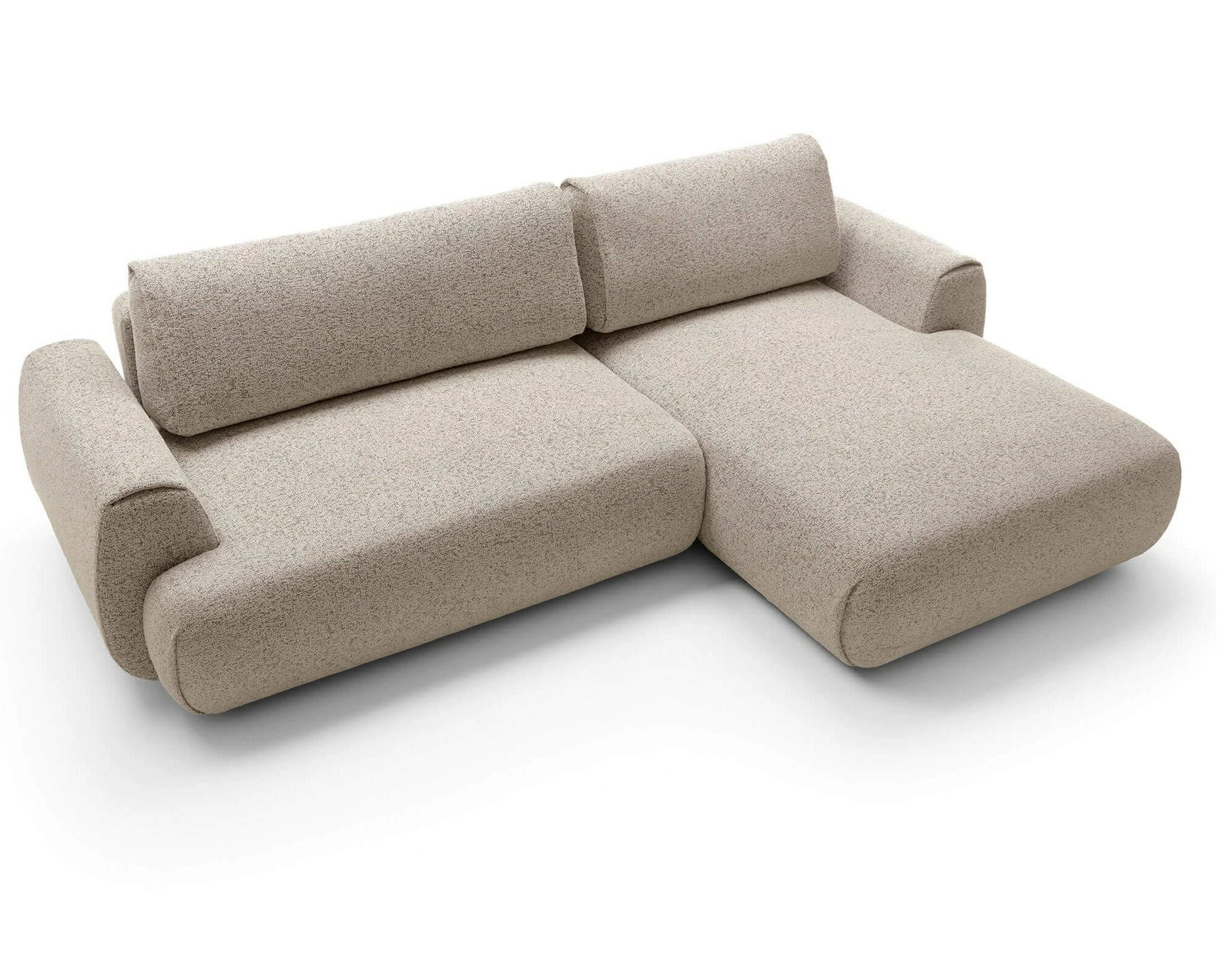 Narożnik z funkcją spania prawy Ljung marki Intesi to nowoczesny mebel tapicerowany w ciemnym odcieniu beżu, który doskonale łączy minimalistyczny design z codzienną funkcjonalnością. Dzięki szerokości 270 cm i głębokości 167 cm oferuje przestronne miejsce do wypoczynku, a po rozłożeniu zamienia się w wygodne łóżko o powierzchni 213x130 cm. Zastosowanie tkaniny Puente 16 oraz sprężystej pianki tapicerskiej zapewnia komfort siedzenia i trwałość na lata. Dodatkowy pojemnik na pościel ułatwia przechowywanie, a prawostronny układ idealnie wpisuje się w aranżacje salonu.