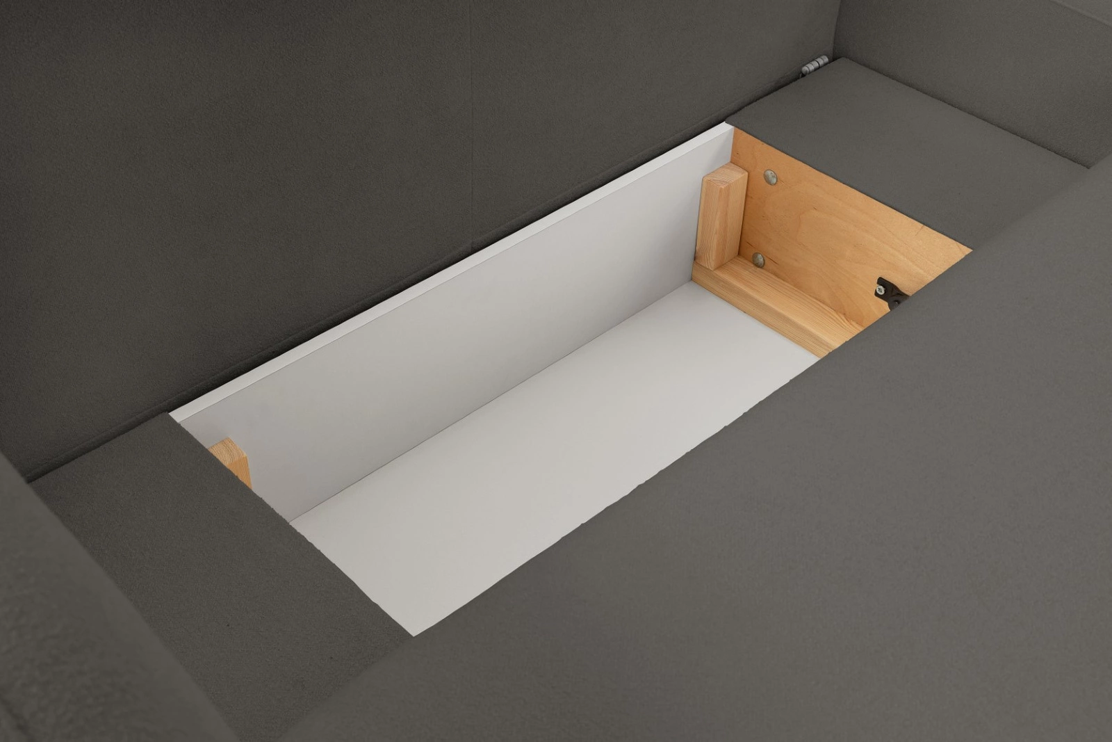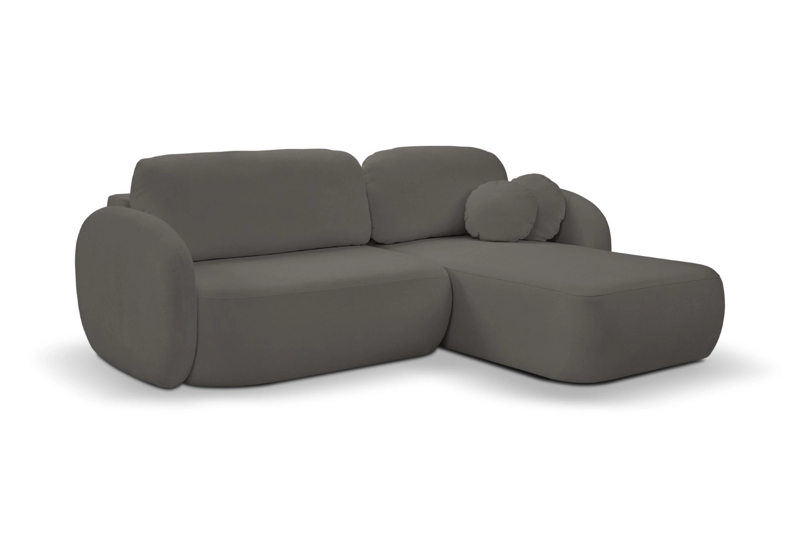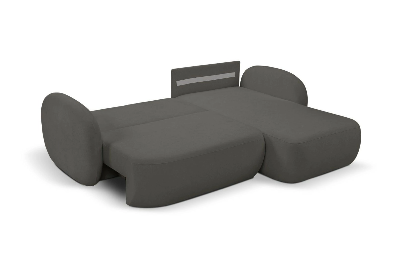 Ten nowoczesny narożnik rozkładany zachwyca praktycznością. Szybki mechanizm typu DL pozwala łatwo zmienić kanapę narożną w wygodne łóżko o powierzchni 138×210 cm – idealnej do codziennego spania lub dla gości. Dodatkowy pojemnik na pościel ułatwia organizację przestrzeni i pozwala przechowywać zapasowe koce czy poduszki zawsze pod ręką, bez potrzeby zagracania szaf.