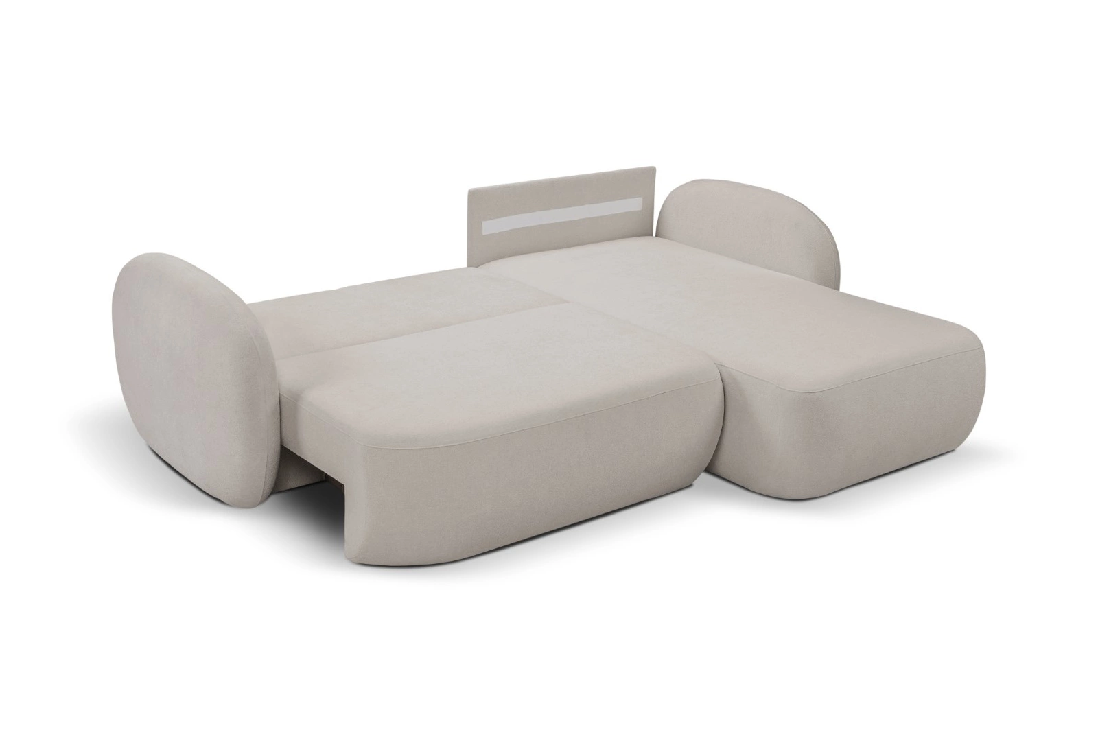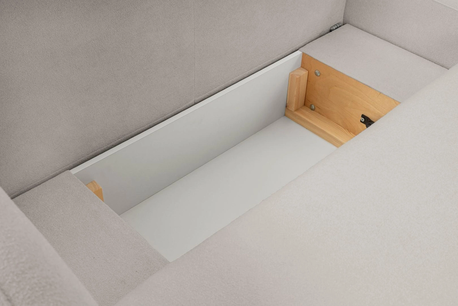 Narożnik z funkcją spania Salby marki Intesi to nowoczesny, prawostronny mebel tapicerowany w jasnoszarym kolorze, zaprojektowany z myślą o wygodzie codziennego użytkowania. Wyróżnia się praktycznym pojemnikiem na pościel, szeroką powierzchnią spania 138×210 cm oraz lekką formą, która doskonale wpisuje się w styl skandynawski. Wykonany z drewna sosnowego, wytrzymałej tkaniny Sicuro 65 i pianki wysokoelastycznej, zapewnia trwałość i komfort zarówno podczas relaksu, jak i snu.