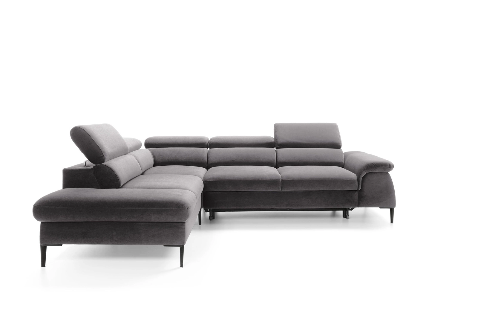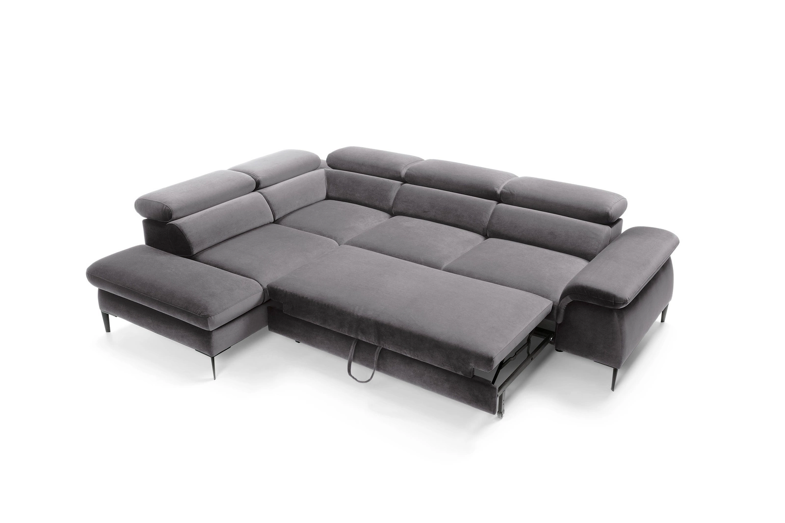Narożnik z funkcją spania Silvo L lewy marki Intesi to propozycja stworzona z myślą o nowoczesnych, skandynawskich wnętrzach. Ten szary narożnik do salonu łączy minimalistyczny design z praktycznością – oferuje dużą powierzchnię wypoczynkową, wygodną funkcję spania o wymiarach 190×122 cm oraz pojemny schowek na pościel. Wysokie, czarne nóżki ułatwiają sprzątanie, a tkanina łatwoczyszcząca Vogue 16 jest przyjazna zwierzętom i odporna na codzienne użytkowanie.