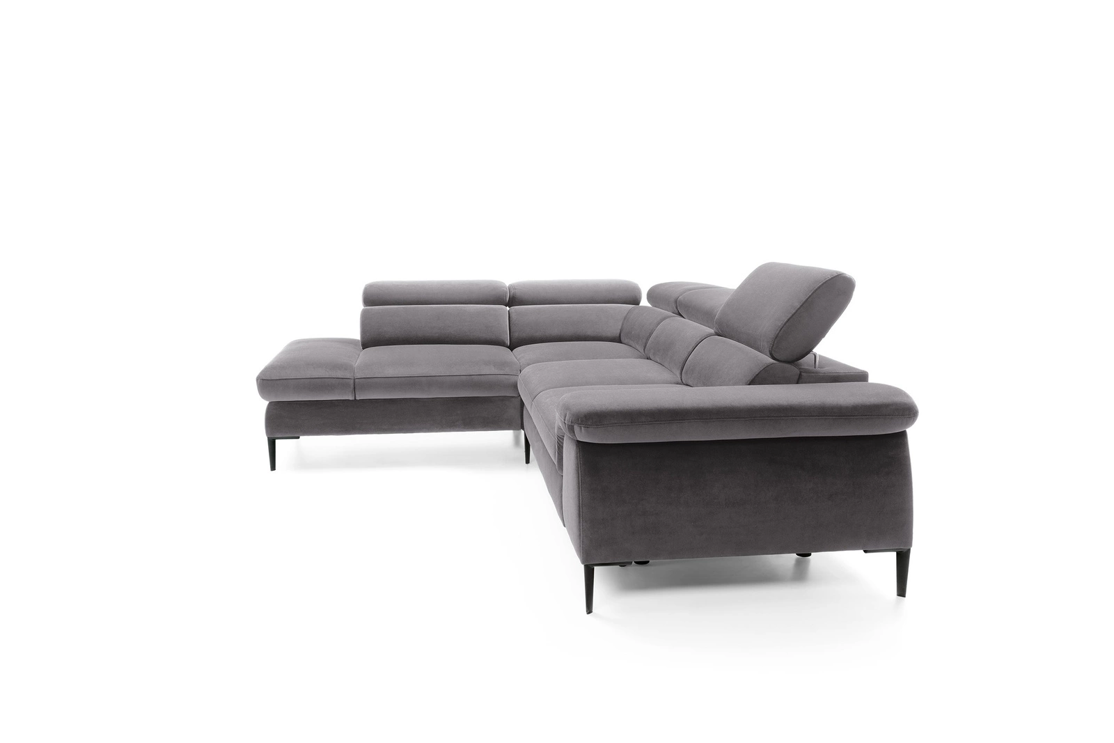 Wyrazisty, szary kolor w połączeniu z wykończeniem z tkaniny Vogue wpisuje się w estetykę skandynawską i podkreśla minimalistyczny charakter wnętrza. Czarne, metalowe nogi dodają lekkości i nowoczesnego sznytu, a wysokość siedziska (47 cm) oraz podłokietniki (61 cm) zapewniają komfort podczas codziennego relaksu. Dodatkowym atutem są regulowane zagłówki, które pozwalają dopasować oparcie do indywidualnych potrzeb i zadbać o odpowiednie podparcie głowy i karku.
