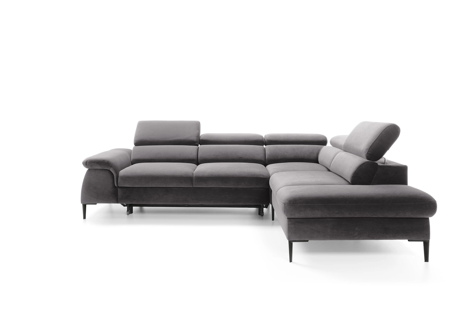 Silvo L prawy to narożnik z funkcją spania, który pozwoli Ci wygodnie wypocząć po długim dniu, a w razie potrzeby przemieni się w wygodne łóżko dla dwóch osób. Zastosowanie regulowanych zagłówków oraz szerokich podłokietników gwarantuje ergonomiczne podparcie podczas czytania, pracy z laptopem czy rodzinnego seansu filmowego. Dzięki głębokości 214 cm i szerokości 280 cm, narożnik zapewnia dużo przestrzeni – zarówno do siedzenia, jak i snu.