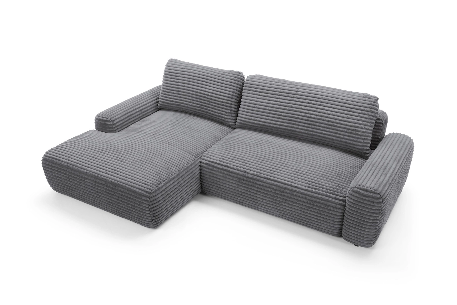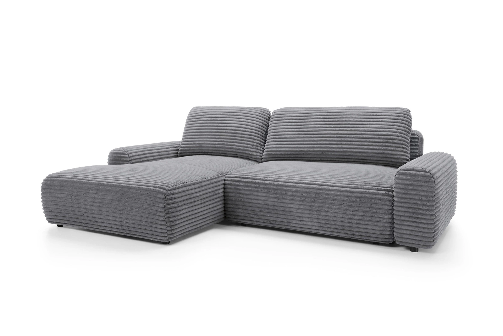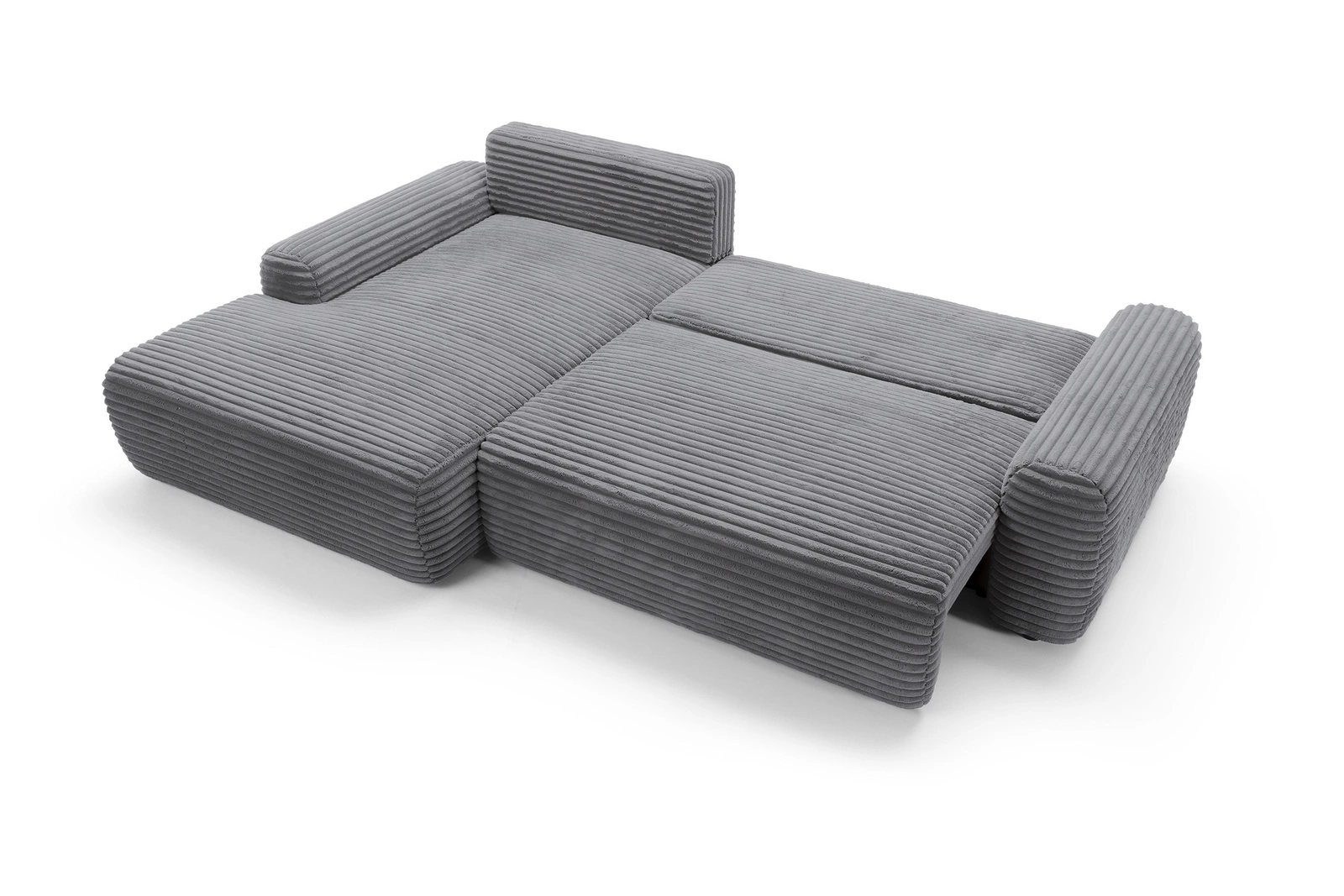 Narożnik z funkcją spania sztruksowy lewy Domle marki Intesi to nowoczesny mebel wypoczynkowy stworzony z myślą o wygodzie użytkowania i stylowym wykończeniu salonu. Wyróżnia go miękka, przyjemna w dotyku tkanina sztruksowa w odcieniu szarego ciemnego oraz praktyczna funkcja rozkładania do spania na powierzchni 210×135 cm. Model ten oferuje również pojemnik na pościel, co pozwala utrzymać porządek nawet w niewielkim wnętrzu.