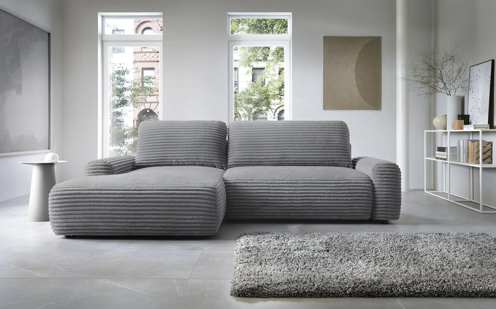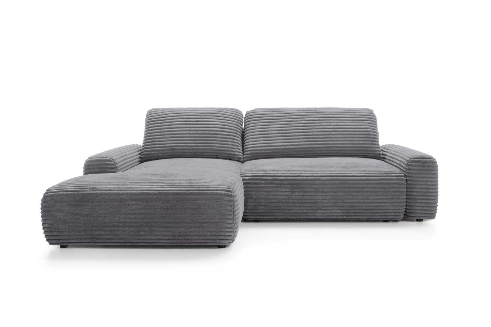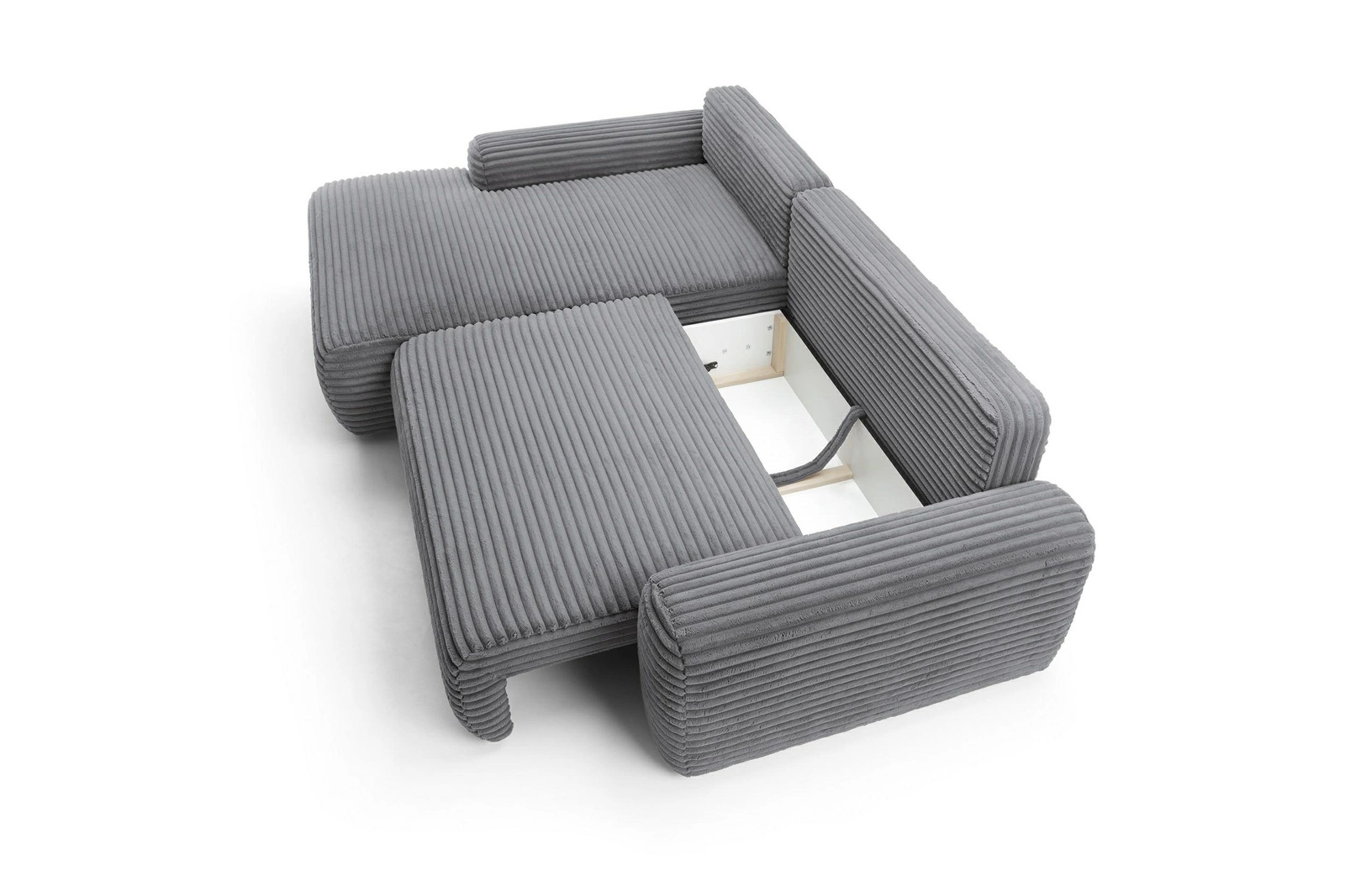 Narożnik z funkcją spania sztruksowy lewy Domle marki Intesi to nowoczesny mebel wypoczynkowy stworzony z myślą o wygodzie użytkowania i stylowym wykończeniu salonu. Wyróżnia go miękka, przyjemna w dotyku tkanina sztruksowa w odcieniu szarego ciemnego oraz praktyczna funkcja rozkładania do spania na powierzchni 210×135 cm. Model ten oferuje również pojemnik na pościel, co pozwala utrzymać porządek nawet w niewielkim wnętrzu.