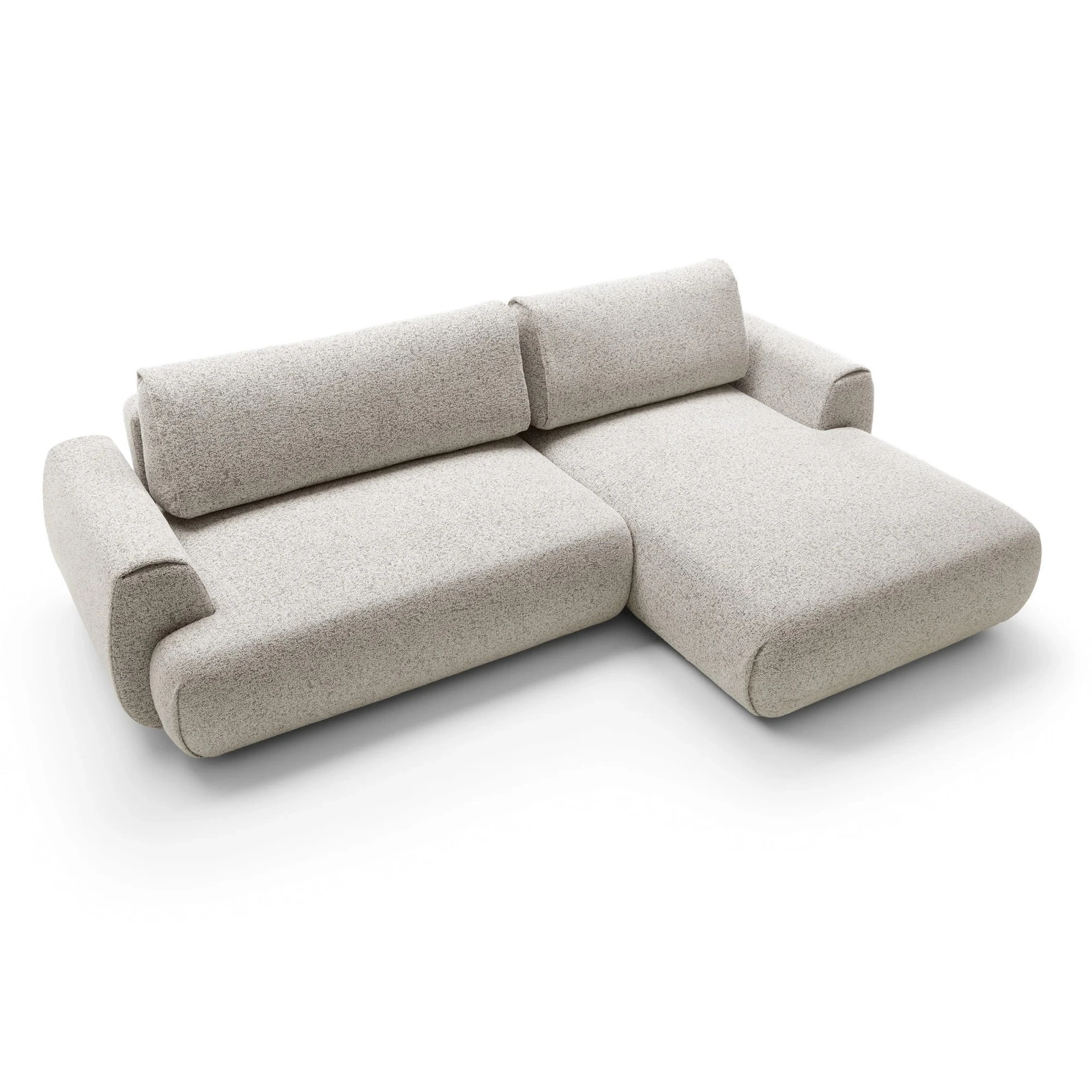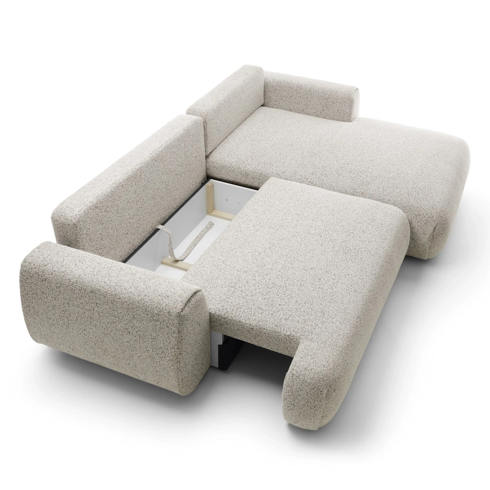 Ten narożnik do salonu został wyposażony w wytrzymały mechanizm rozkładania, który pozwala w kilka chwil zmienić go w wygodne łóżko o powierzchni spania 213×130 cm. To doskonały wybór, jeśli szukasz narożnika do spania codziennego lub potrzebujesz dodatkowego miejsca dla gości. Przemyślany pojemnik na pościel pomieści koce i poduszki, dzięki czemu łatwo utrzymasz porządek w swoim salonie. Tapicerka z miękkiej, przyjemnej w dotyku tkaniny oraz wypełnienie z pianki tapicerskiej zapewniają komfort nawet podczas dłuższego użytkowania.