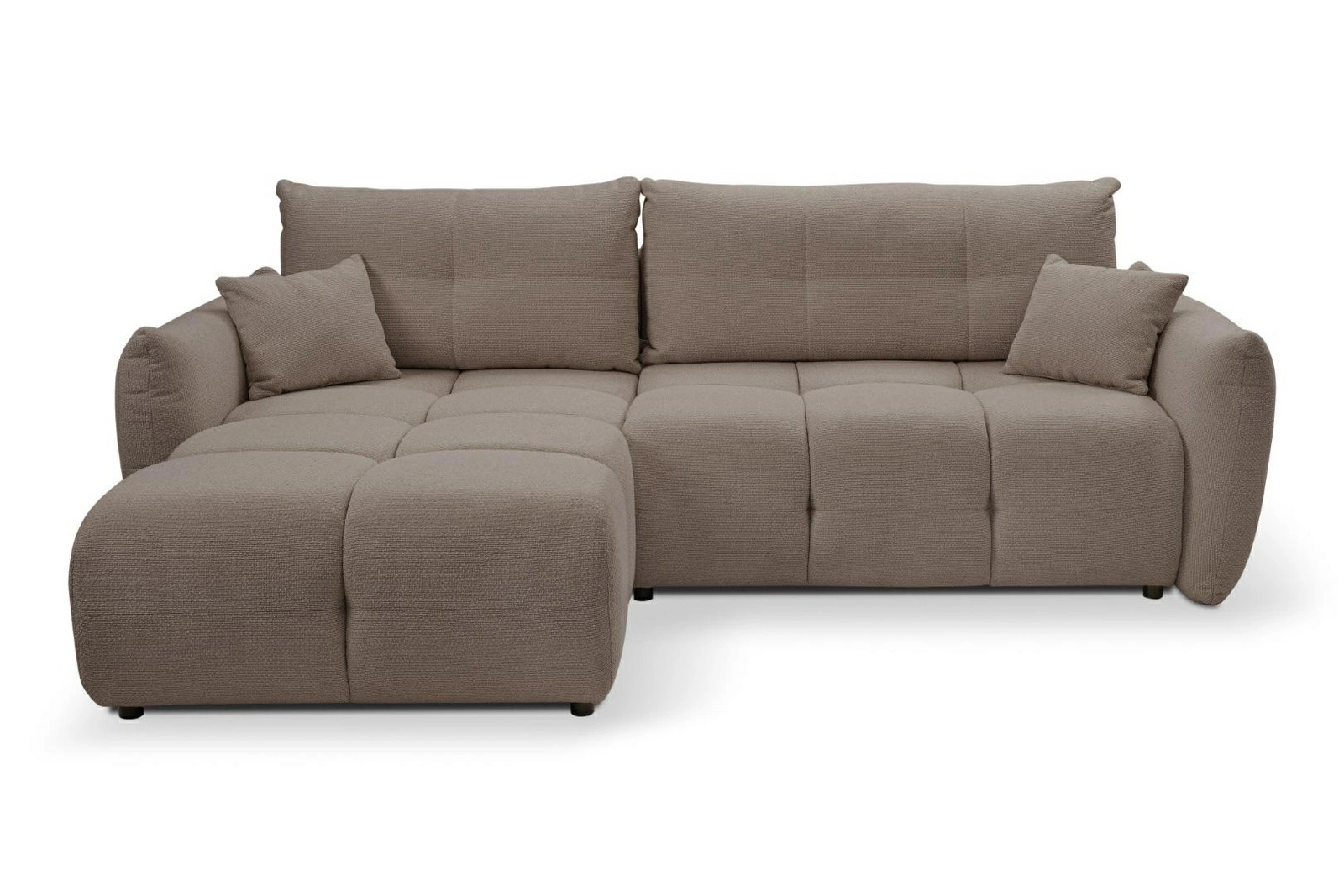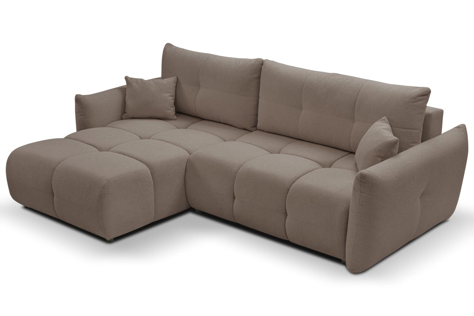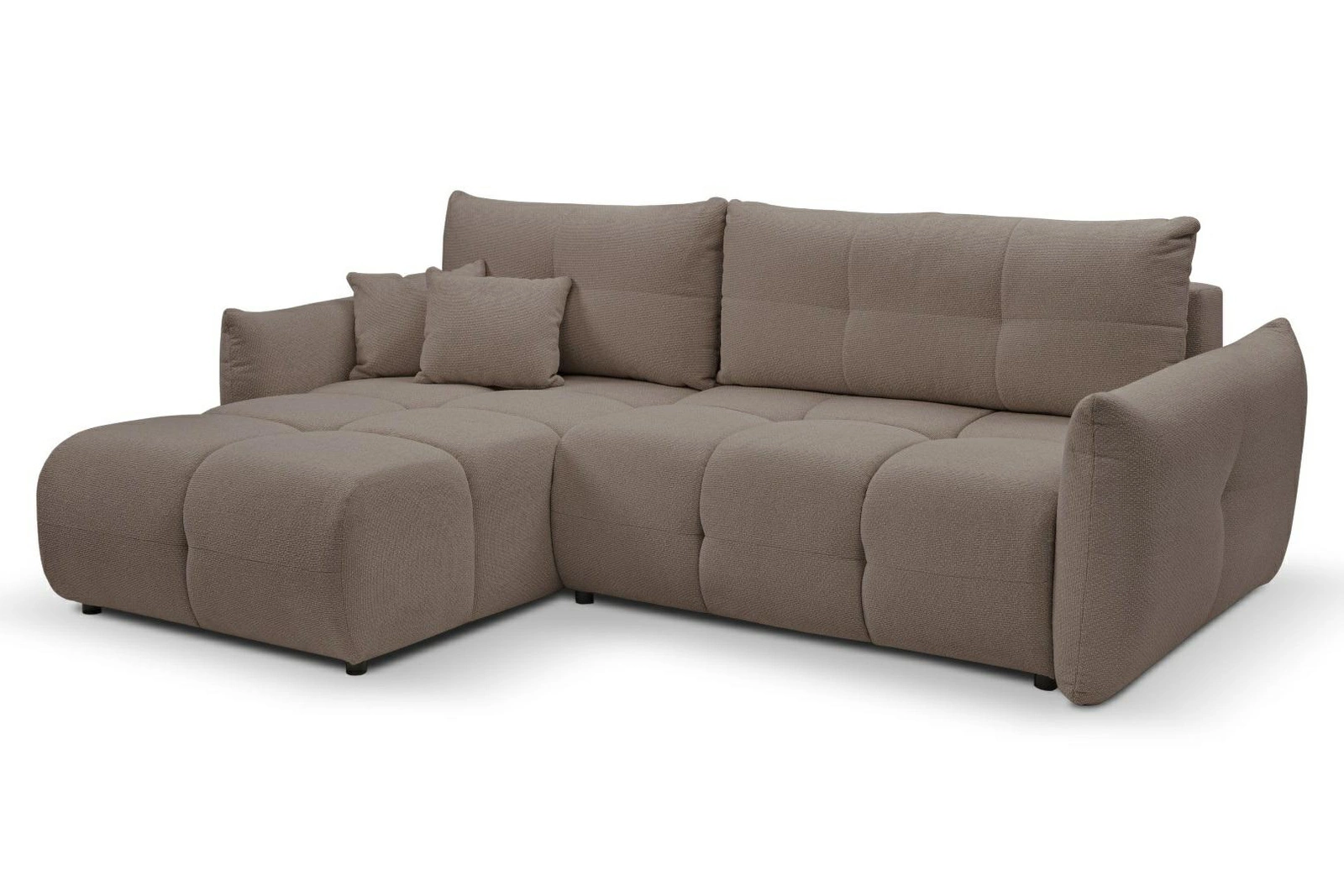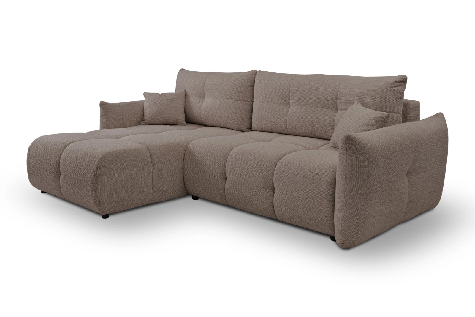 Nowoczesny narożnik z funkcją spania lewy Bode cappucino marki Intesi to połączenie eleganckiego designu, wygody i praktycznych rozwiązań dla Twojego salonu. Ten tapicerowany narożnik w ciepłym, brązowym odcieniu cappucino posiada duże, pikowane poduchy, szerokie podłokietniki oraz przestrzenny pojemnik na pościel. Szerokość 257 cm i głębokość 177 cm zapewniają dużo miejsca do relaksu, a powierzchnia spania 145×212 cm pozwala na komfortowe użytkowanie na co dzień.