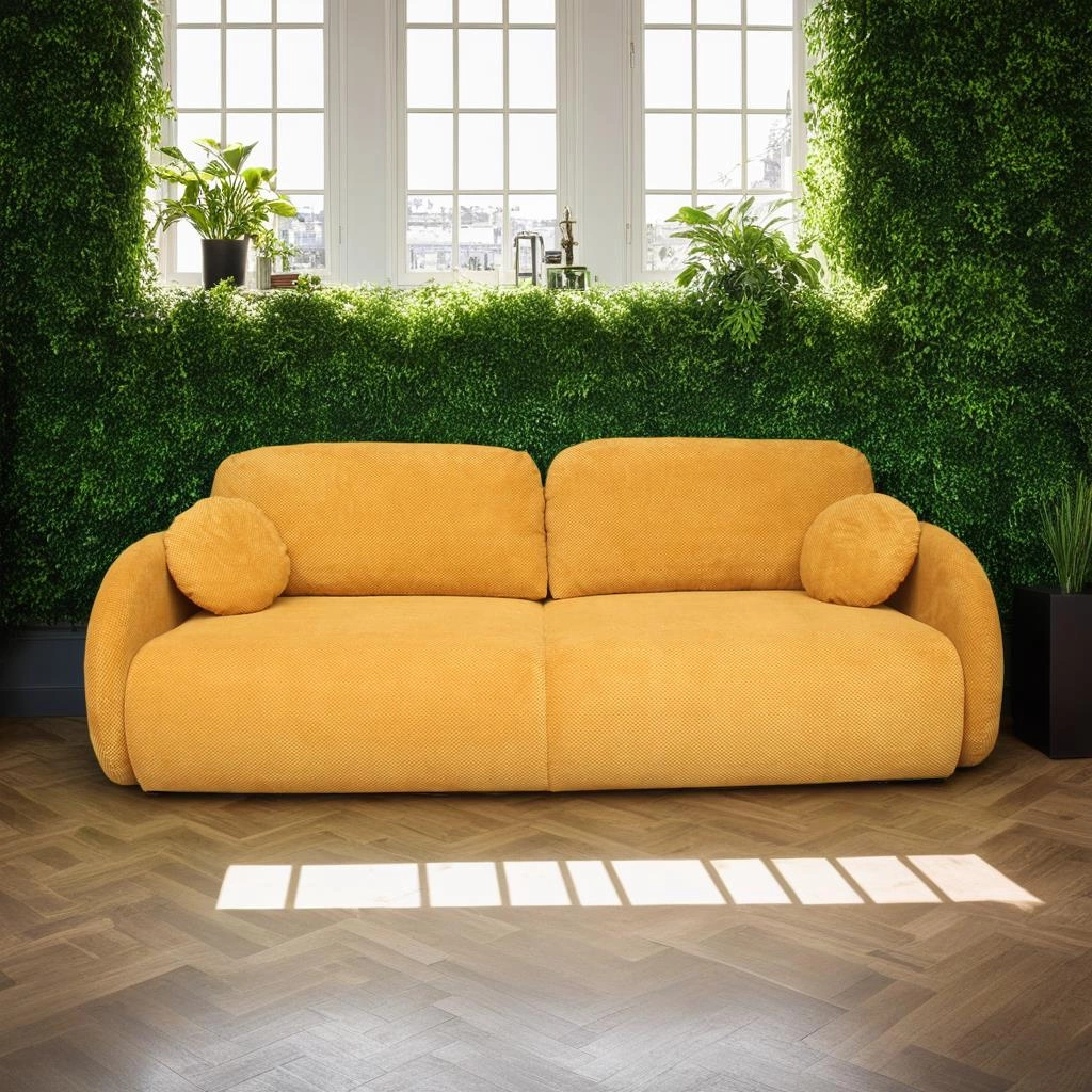 - Funkcjonalność: Sofa posiada funkcję spania z automatycznym wyrzutkiem DL oraz pojemnik na pościel, co sprawia, że jest niezwykle praktyczna.
