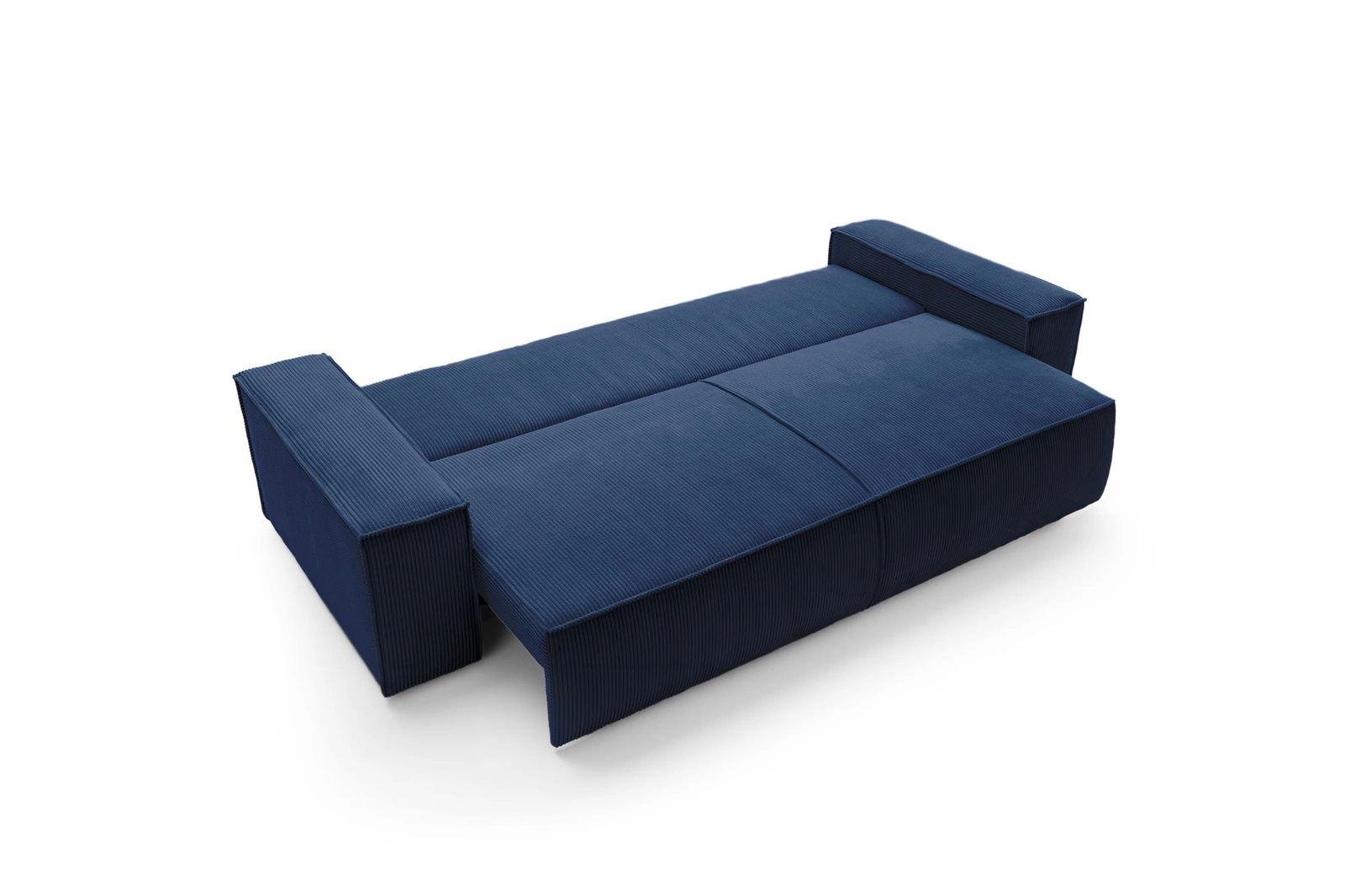 Granatowy sztruks Intesi Sofa Molde to wyjątkowy mebel, który łączy w sobie elegancję i funkcjonalność. Jej minimalistyczny design i ciekawa faktura materiału sprawiają, że jest to mebel ponadczasowy, który doskonale wpasuje się w każde wnętrze. Dodatkowo, Sofa Molde posiada praktyczne funkcje, takie jak pojemnik na pościel czy możliwość rozłożenia do powierzchni spania 200x135cm, co z pewnością przyda się podczas spotkań z rodziną czy przyjaciółmi.