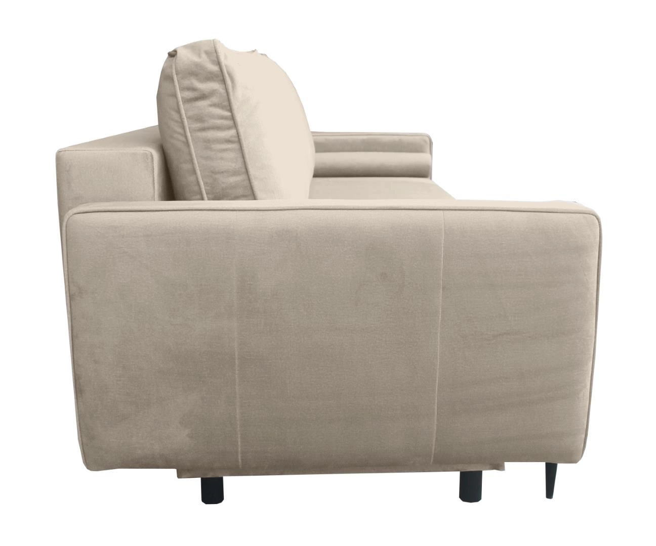 Funkcjonalność sofy rozkładanej Arosa to nie tylko wygodne miejsce do siedzenia i spania. Praktyczny pojemnik na pościel pozwala łatwo schować koce, poduszki lub inne akcesoria, pomagając utrzymać porządek w domu. Intuicyjny mechanizm rozkładania umożliwia szybką zmianę funkcji mebla bez wysiłku – docenisz to zarówno w małym mieszkaniu, jak i w przestronnym salonie.