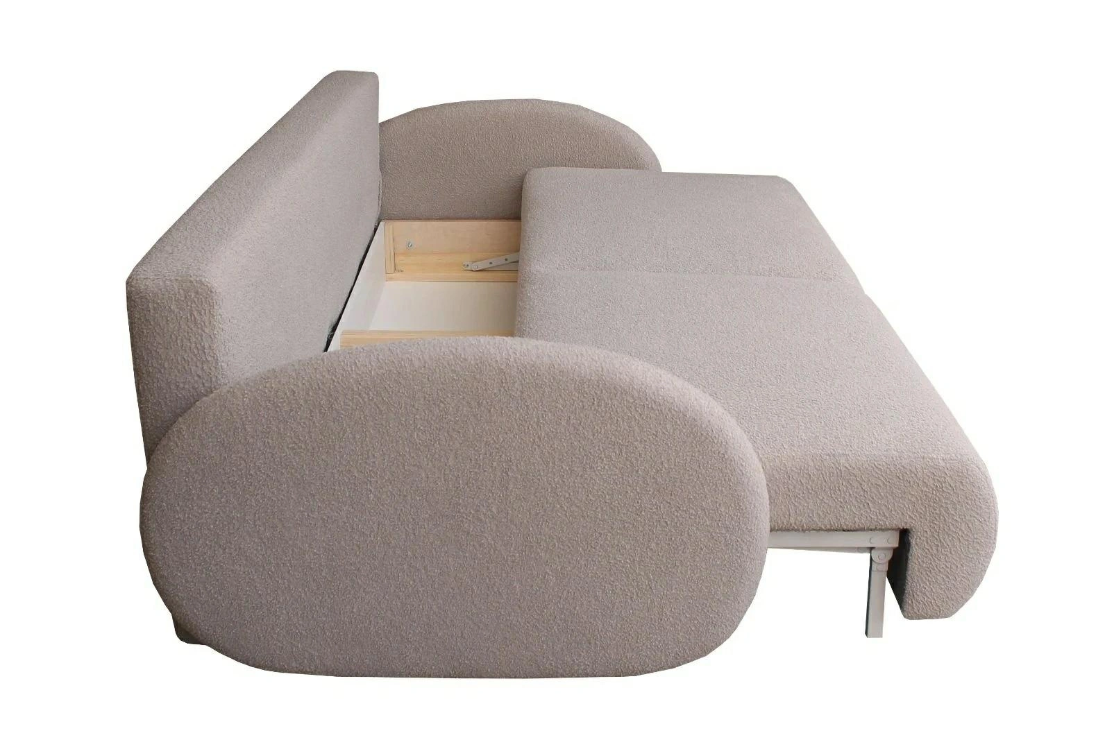 - Funkcja spania i pojemnik na pościel – szybko przygotujesz miejsce do snu i utrzymasz porządek w salonie