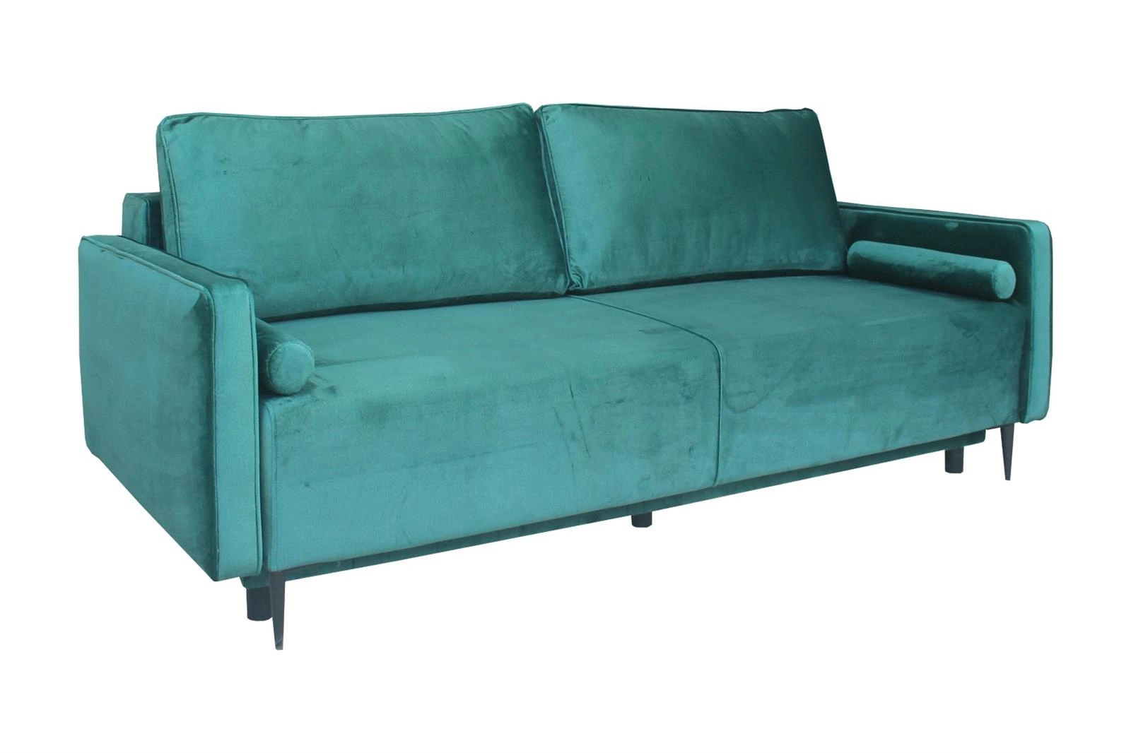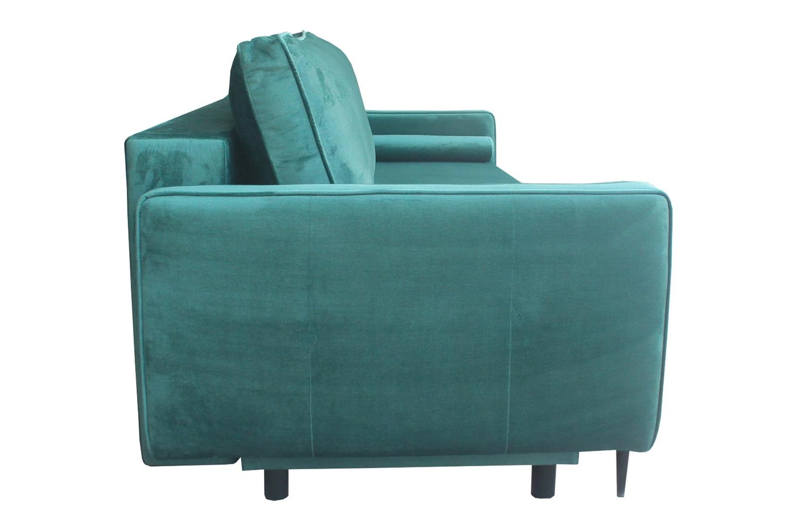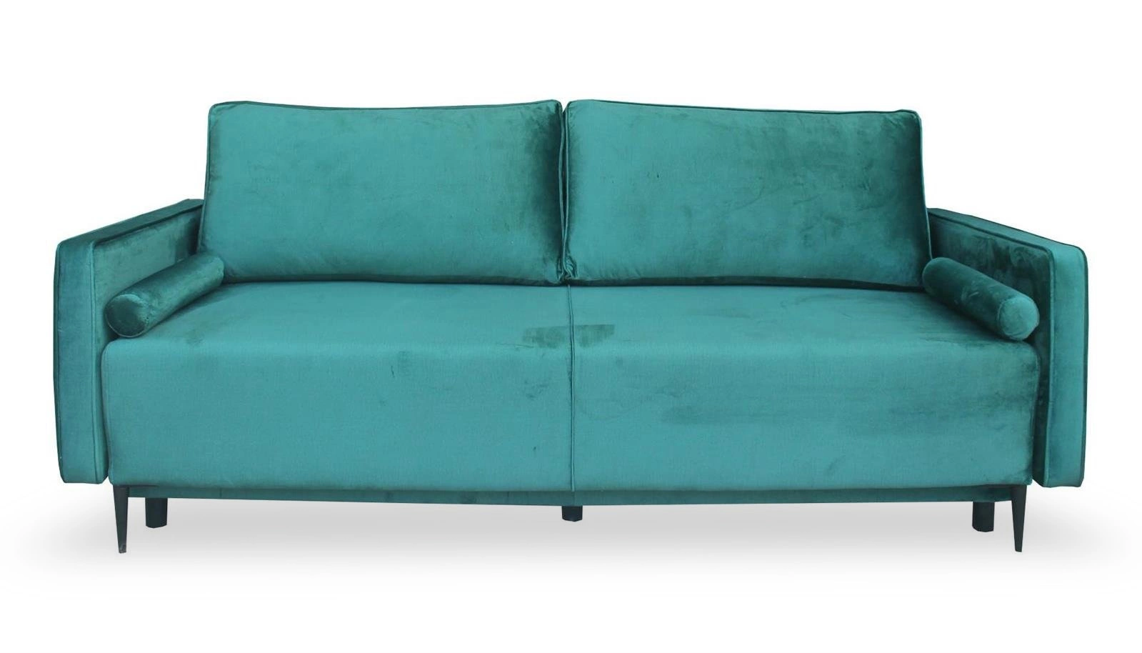 Sofa rozkładana Arosa z funkcją spania do salonu welurowa zielona z pojemnikiem Intesi
