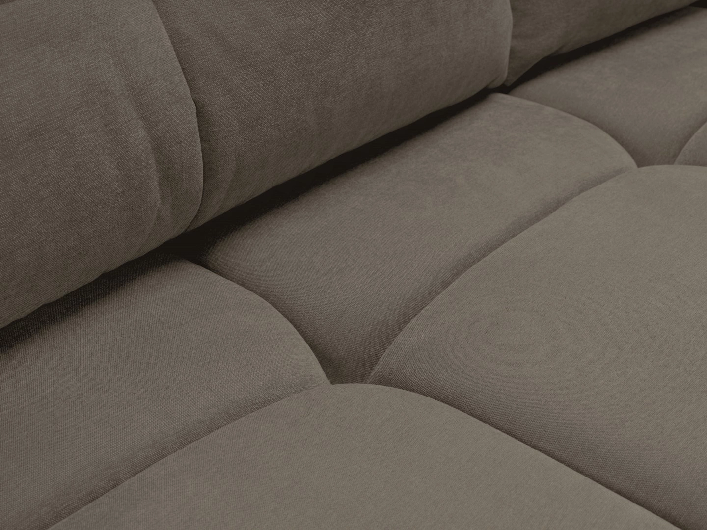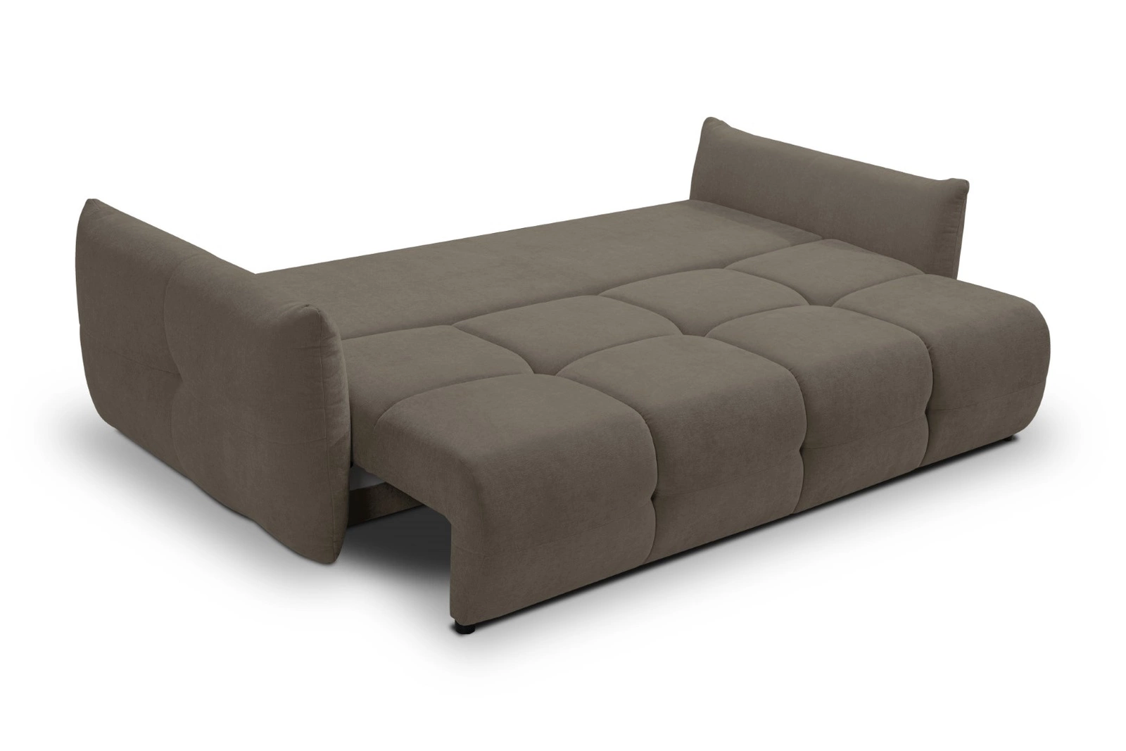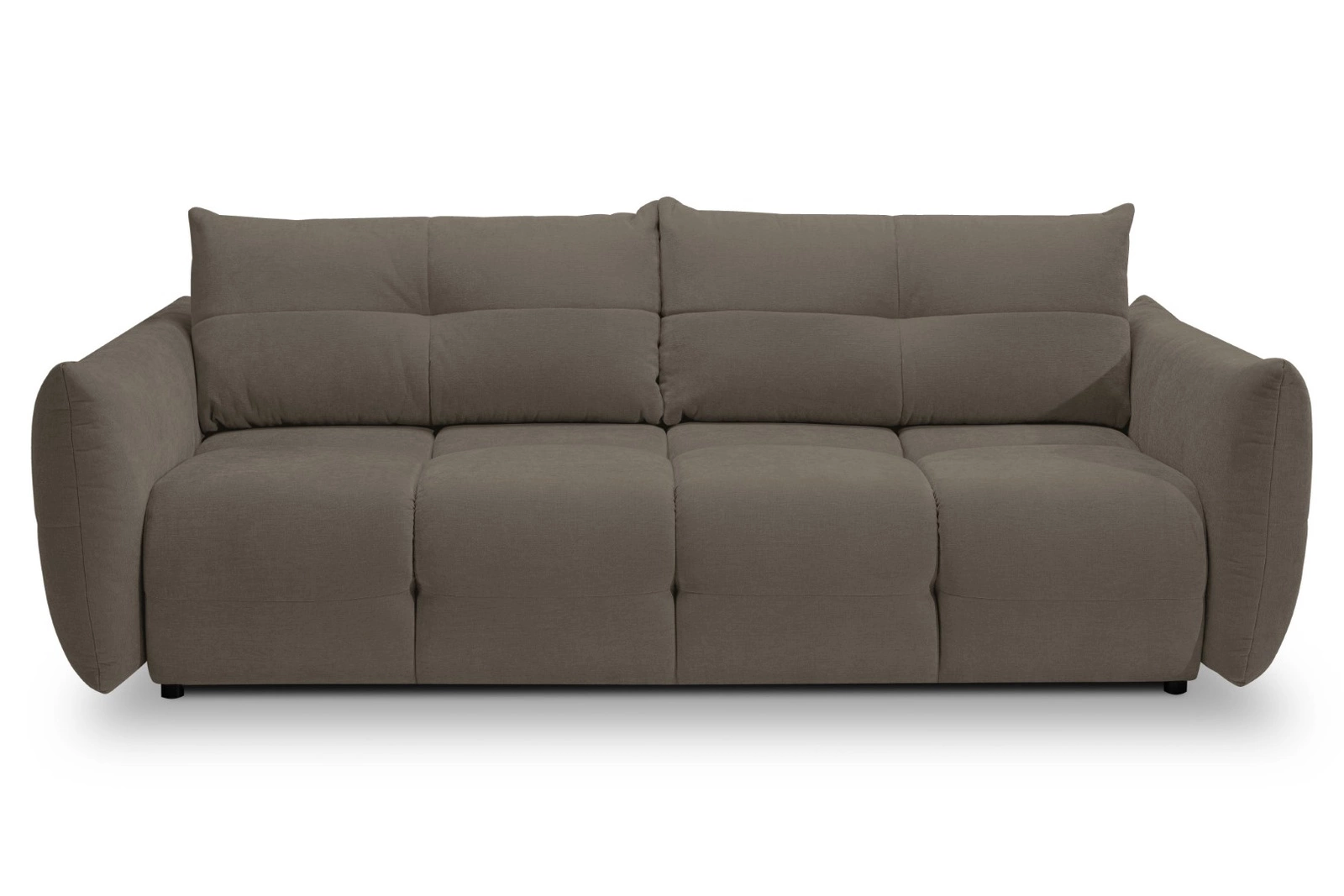 Sofa rozkładana Bode 3 osobowa marki Intesi to połączenie nowoczesnej funkcjonalności z wyrazistym stylem, które doskonale sprawdzi się w salonie lub pokoju dziennym. Model w szarobrązowym kolorze, wykończony miękką tkaniną o aksamitnej fakturze i eleganckim pikowaniu, zapewnia nie tylko komfortowy wypoczynek, ale także wygodne miejsce do codziennego spania dzięki powierzchni 144×200 cm. Praktyczny pojemnik na pościel oraz solidne czarne nogi podkreślają praktyczny charakter sofy i ułatwiają utrzymanie porządku.