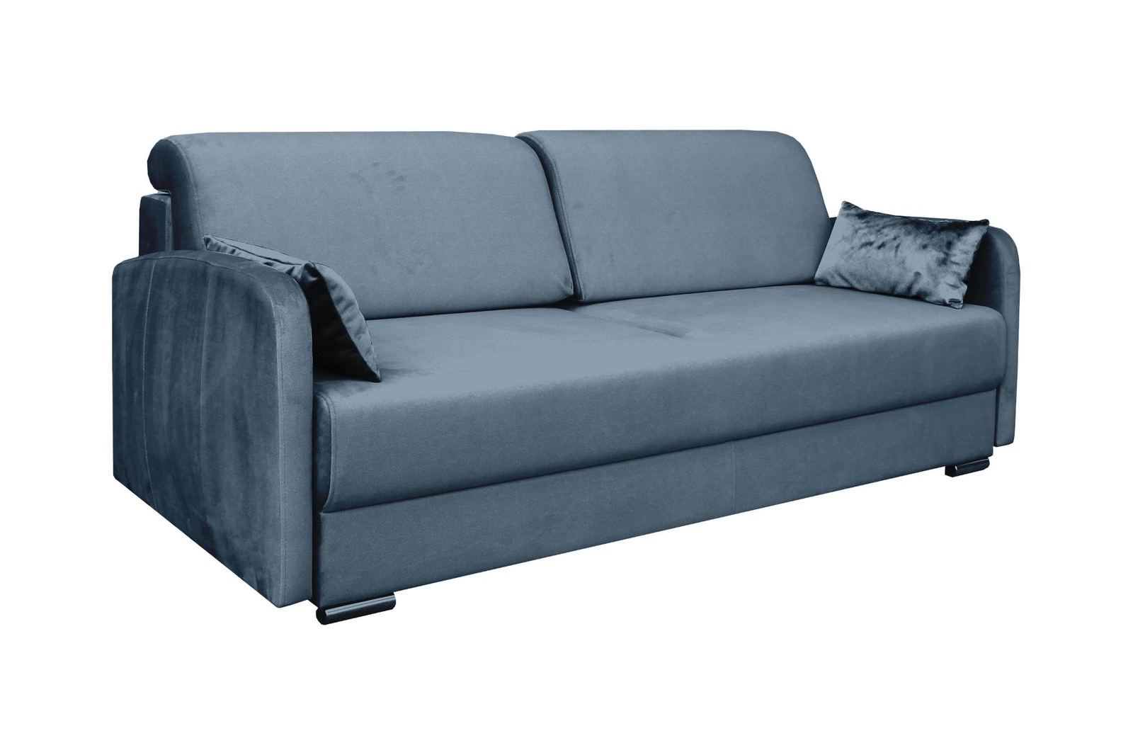 Coria przyciąga wzrok eleganckim niebieskim kolorem i subtelnym połyskiem aksamitnej tkaniny, która jest nie tylko przyjemna w dotyku, ale także łatwa do utrzymania w czystości. Prosta, geometryczna forma oraz delikatnie wyprofilowane podłokietniki sprawiają, że sofa świetnie wpisuje się w nowoczesne aranżacje wnętrz. Chromowane nogi dodają lekkości i podkreślają loftowy charakter mebla, czyniąc go wyjątkowym punktem każdego salonu, pokoju dziennego czy gabinetu.