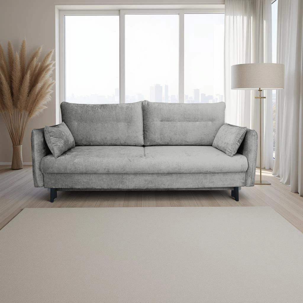 Sofa rozkładana dwuosobowa Totana szara z pojemnikiem do salonu styl skandynawski