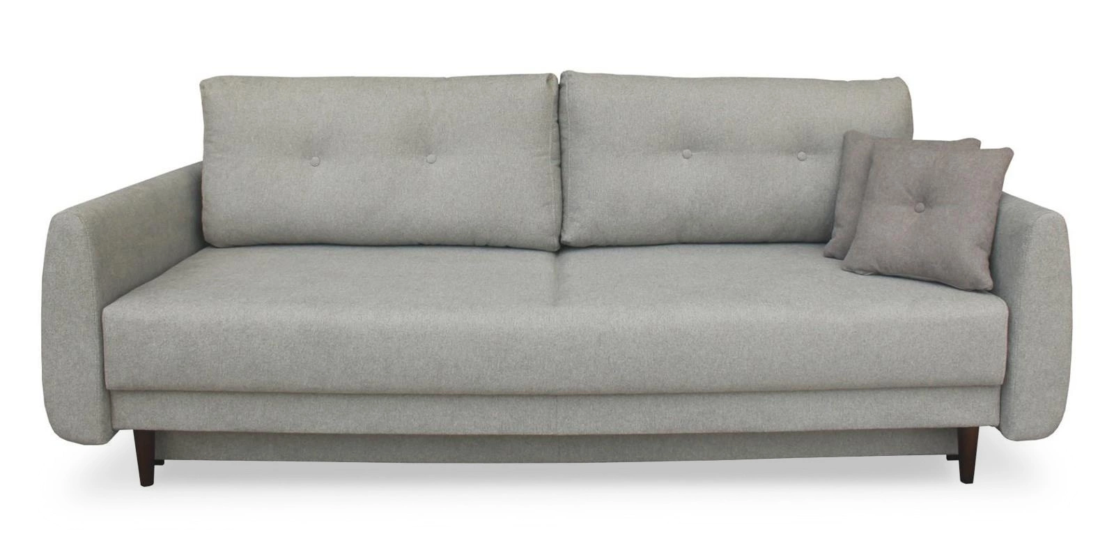 Składa się z tapicerowanego siedziska z podłokietnikami, które wypełnia pianka T30 charakteryzująca się dużym stopniem gęstości. Uzupełniona dodatkowo sprężynami falistymi zapewnia bardzo dobrą sprężystość i doskonałą twardość, która zapobiega odkształcaniu się powierzchni. Całość spoczywa na podstawie z pięciu drewnianych nóg w kolorze orzech oraz dwóch dodatkowych, które wspierają rozkładaną część sofy. Dla jeszcze większego komfortu sofa rozkładana posiada dodatkowe poduszki na oparciu oraz dwie mniejsze ozdobne w kolorze obicia.
