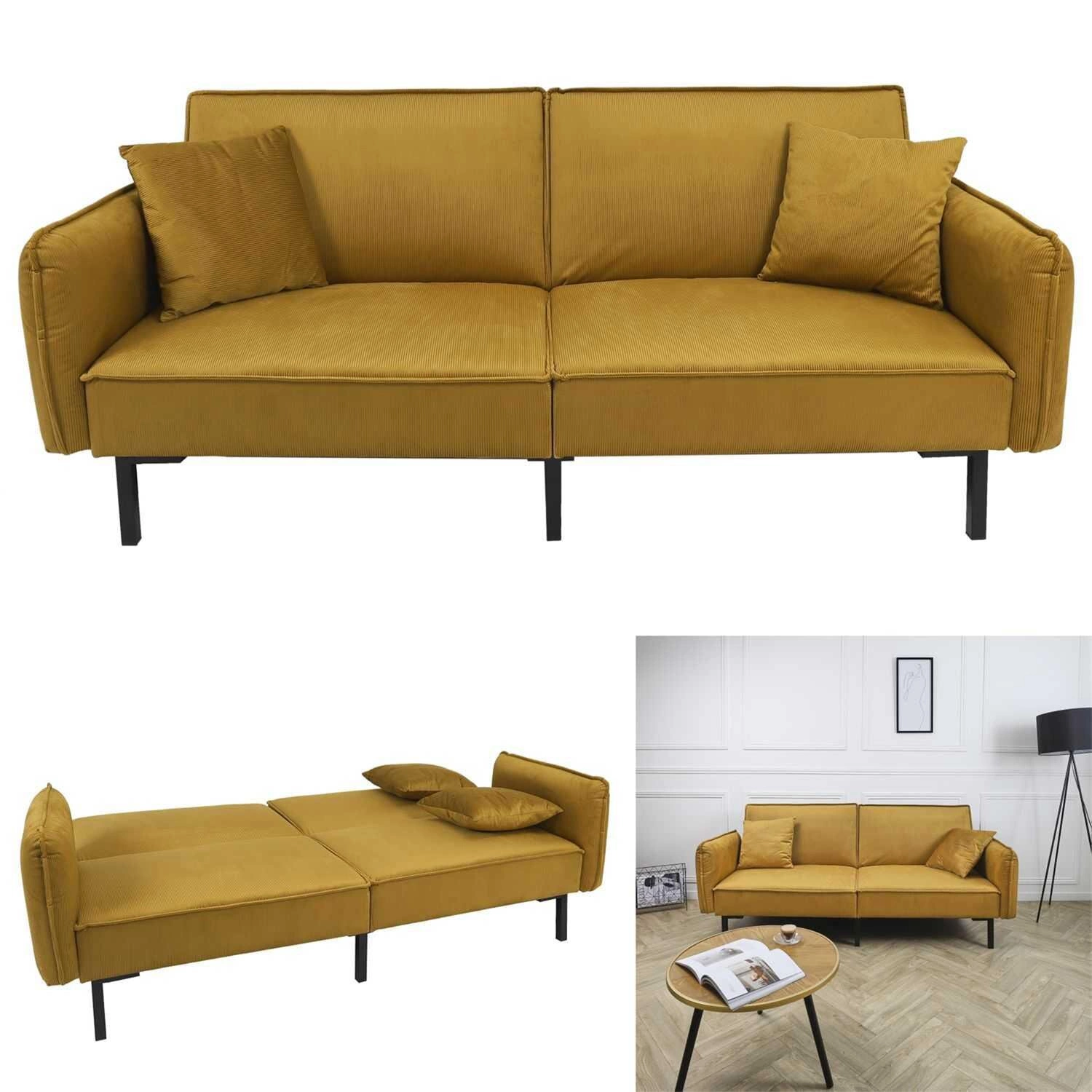 Sofa rozkładana Giulia w żółtym kolorze to wyjątkowy mebel, który łączy funkcjonalność z wygodą i stylowym designem. Jej kompaktowa szerokość, mniejsza niż 2 metry, sprawia, że jest idealnym rozwiązaniem do kawalerek oraz niedużych pokoi gościnnych. Sofa oferuje powierzchnię spania o wymiarach 105 x 171 cm, co czyni ją praktycznym wyborem dla osób potrzebujących dodatkowego miejsca do spania. Żółta tkanina obiciowa, wykonana w 100% z poliestru, nadaje jej nowoczesny wygląd i wprowadza do wnętrza energię i świeżość.