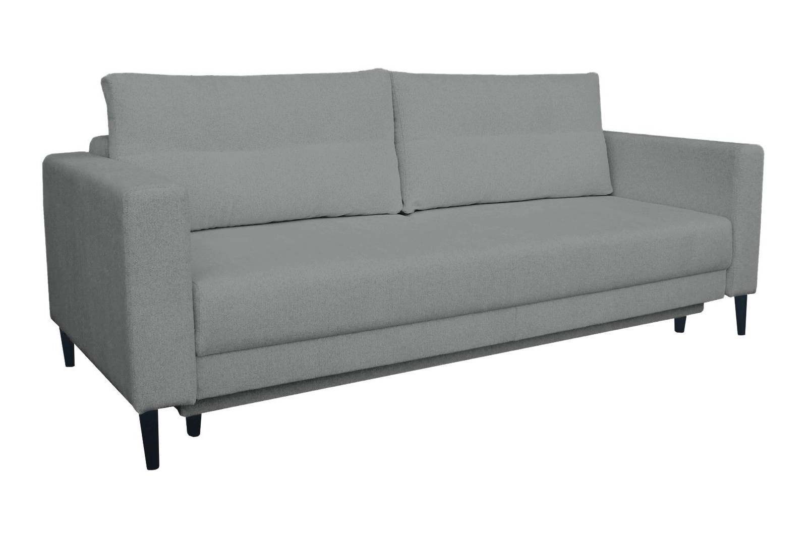 Kanapa z funkcją spania Lara łączy design z użytecznością – pod siedziskiem ukryty jest duży pojemnik na pościel, który pomoże Ci utrzymać porządek i zaoszczędzić miejsce w szafie. Aksamitna tapicerka w odcieniu szarości jest nie tylko elegancka, ale także łatwa w czyszczeniu i przyjazna zwierzętom. Stabilne, czarne nogi z drewna bukowego zapewniają trwałość i dodają lekkości całej konstrukcji.