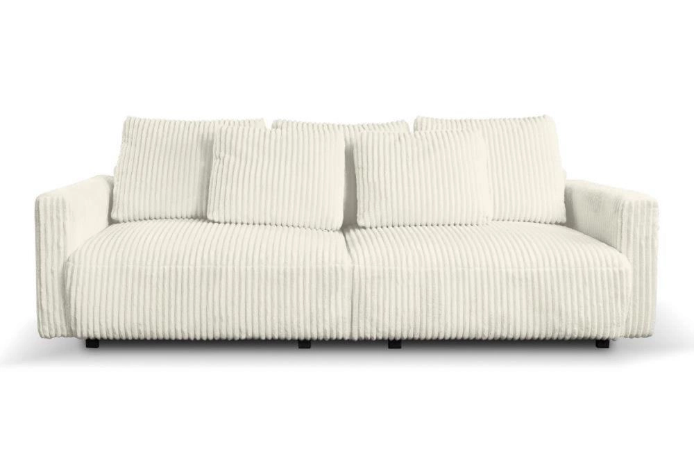 Szukasz mebla, który odmieni Twoje wnętrze i wprowadzi do niego lekkość? Biała sofa rozkładana Loppie to idealny wybór dla miłośników nowoczesnych aranżacji. Delikatna struktura sztruksowej tkaniny nie tylko pięknie się prezentuje, ale także jest wyjątkowo przyjemna w dotyku. Minimalistyczna linia, subtelne przeszycia oraz zgrabne podłokietniki sprawiają, że sofa świetnie pasuje do jasnych, przestronnych salonów i wnętrz inspirowanych stylem skandynawskim.